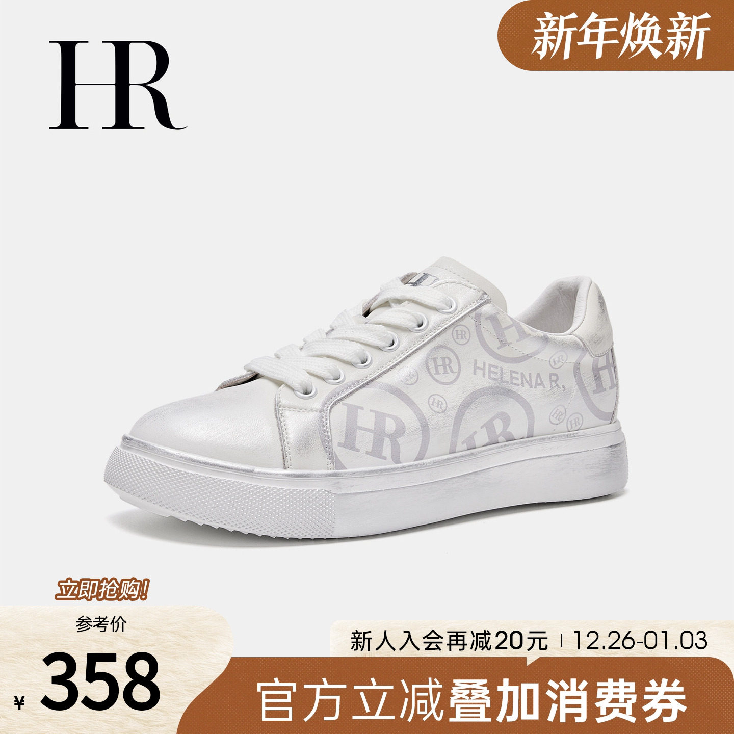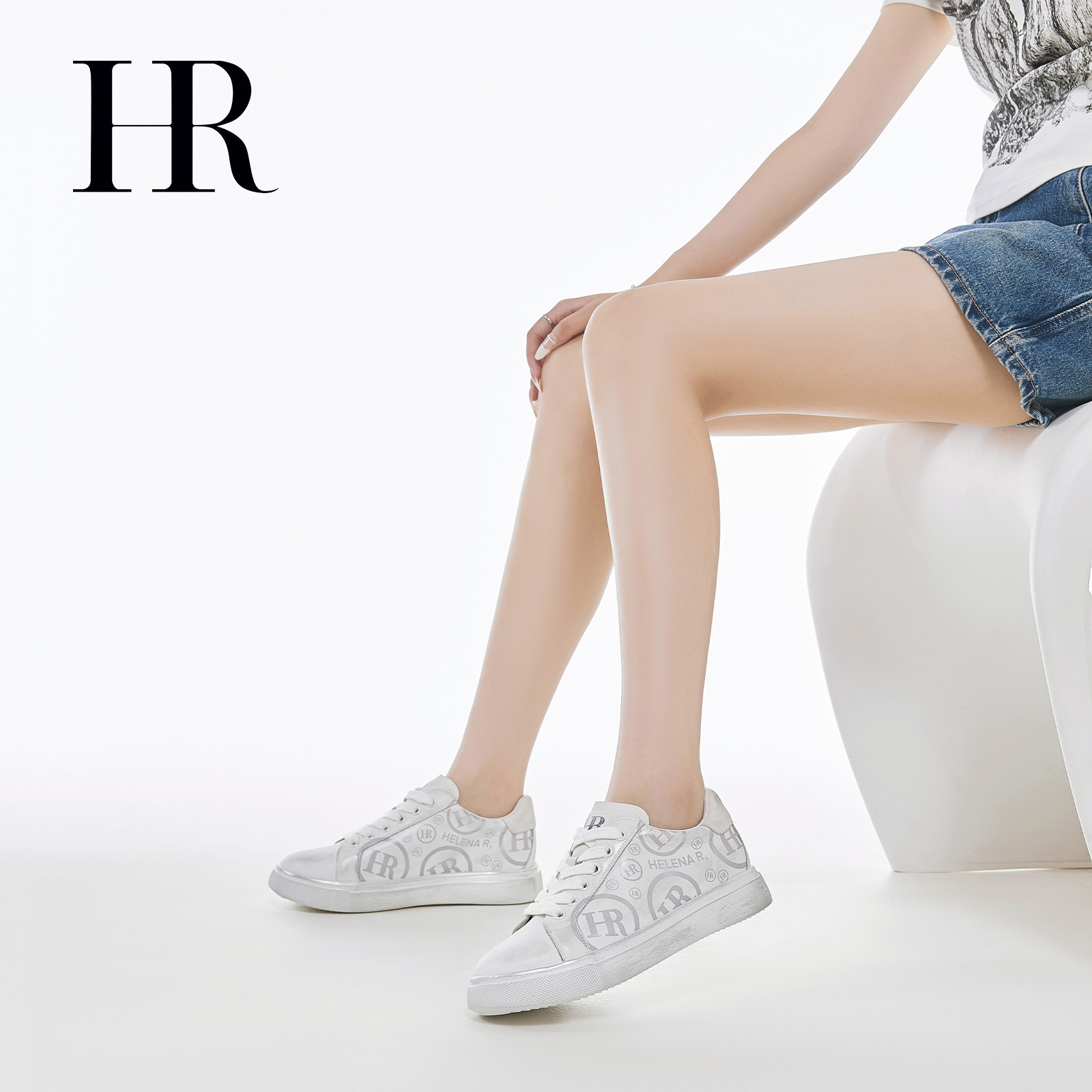 HR赫莲娜板鞋2025夏季新款休闲女鞋子厚底做旧擦色小白鞋小众原创