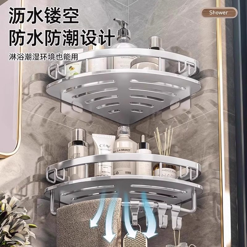 孔卫生间浴室三角置物架壁挂式厕所洗手间洗漱台墙上收纳挂架