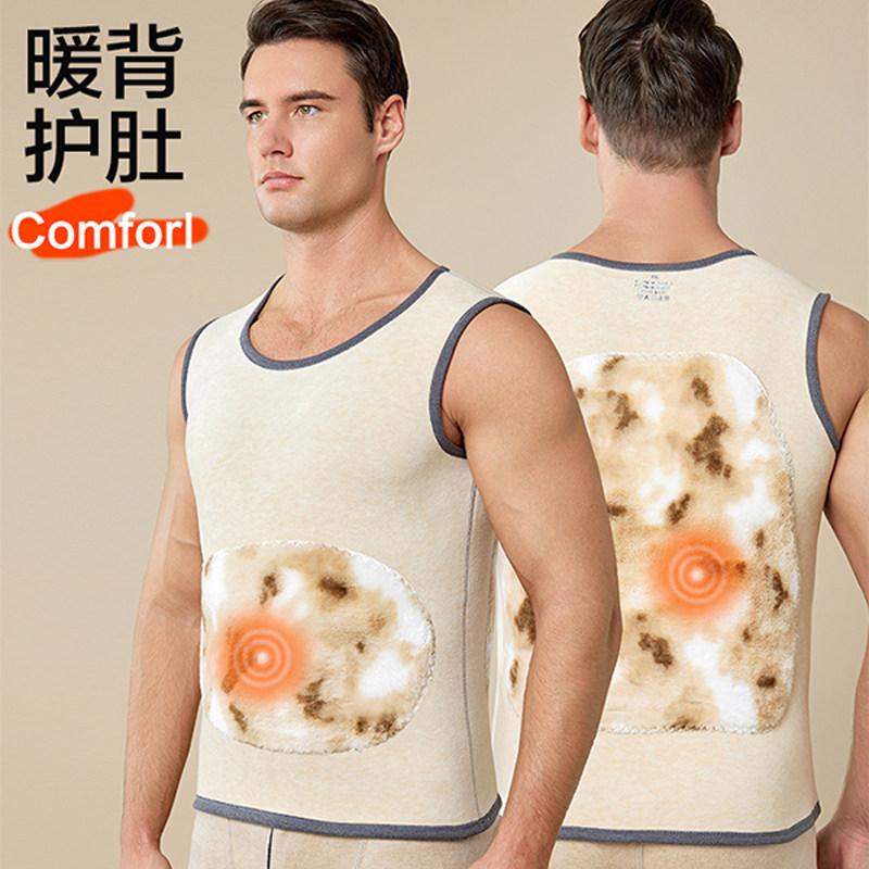 奥康羊毛蚕丝保暖内衣男绒德无痕发热加绒加厚内穿打底背心冬上衣