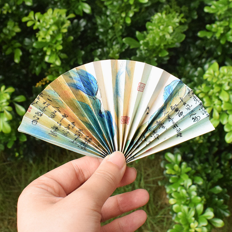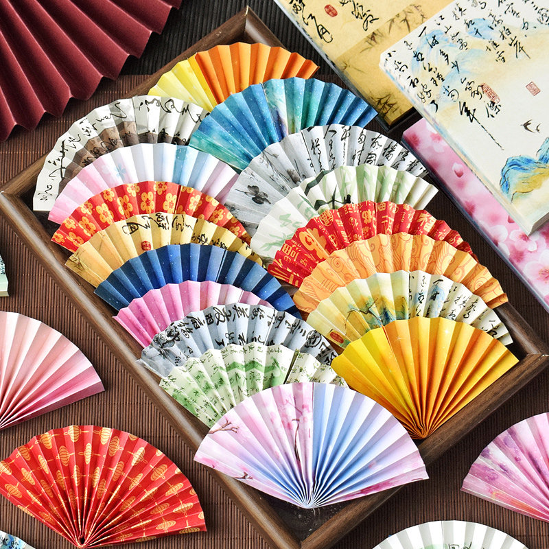 手工折扇材料包新中式叠纸装饰迷你小扇子幼儿园儿童小学生自制折叠半圆扇中国风复古风生日礼物折纸扇折叠扇