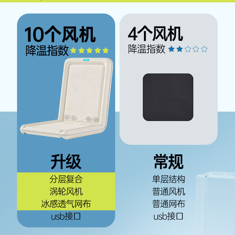夏季通风坐垫办公室椅子制冷靠垫带风扇靠背一体USB车载散热凉垫
