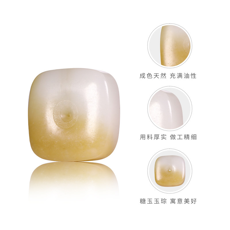 和合玉器和田玉糖白玉玉琮挂件山料糖羊脂玉方形玉牌吊坠玉坠子