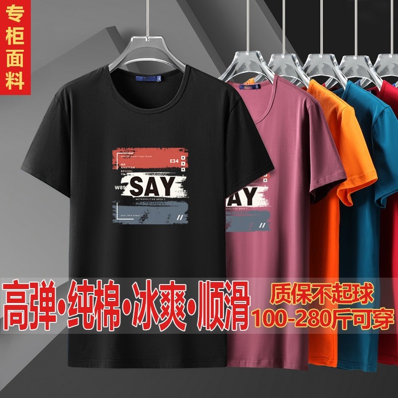 夏季加肥加大码男短袖t恤 宽松弹力纯棉半袖薄款胖子休闲潮流体恤