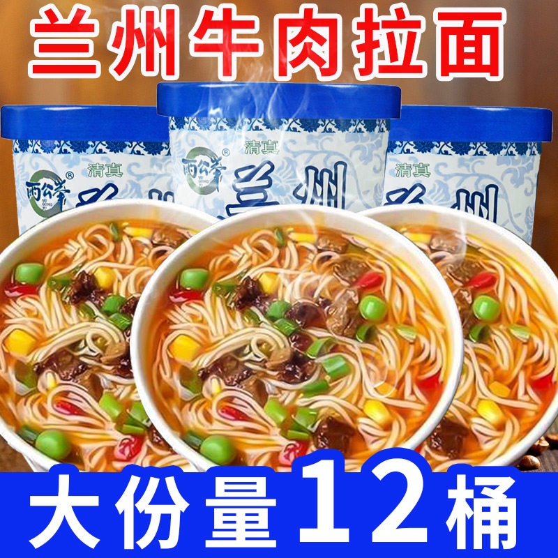 拍3桶送3桶兰州牛肉面拉面非油炸方便冲泡速食泡面整箱面饼清真