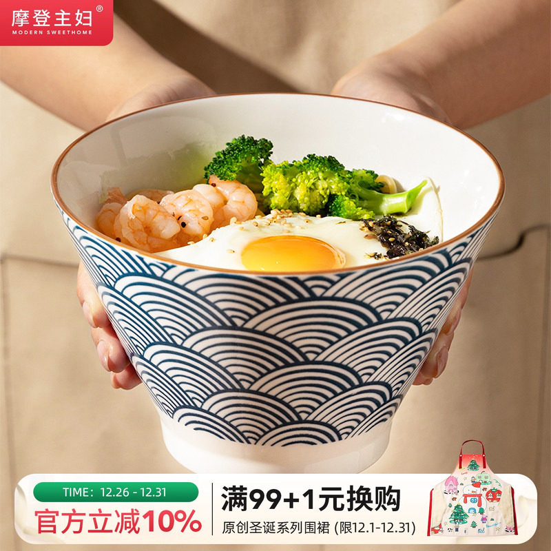 摩登主妇釉下彩面碗家用餐具泡面碗汤面碗个人专用斗笠碗吃拉面碗