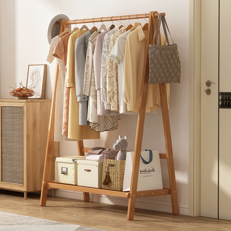 衣帽架落地挂衣架卧室实木晾衣服架子挂衣杆双层家居置物楠竹结实