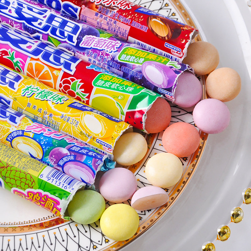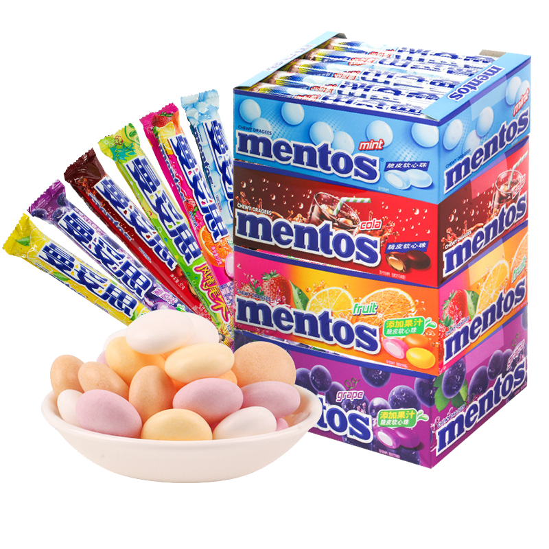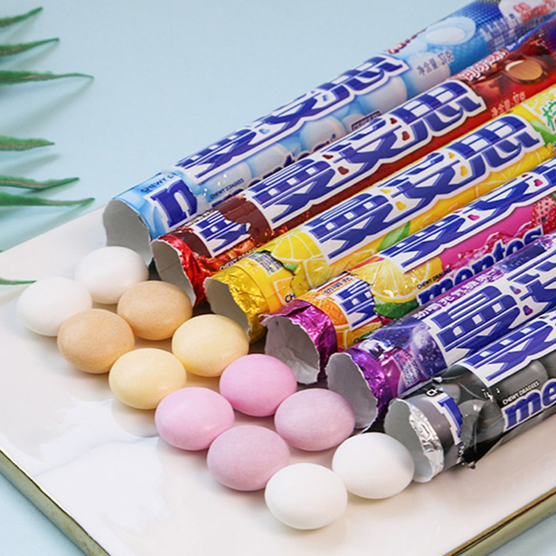 曼妥思水果味充气夹心软糖条装薄荷糖儿童糖果零食37克薄荷味柠檬