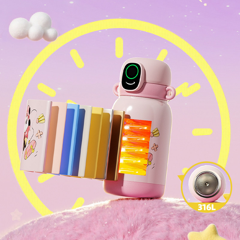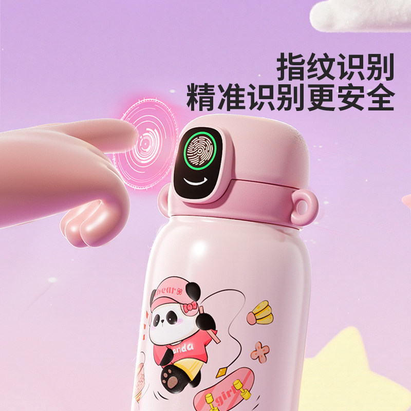摩登主妇指纹水杯智能解锁保温杯男女学生上学儿童专用吸管水杯子