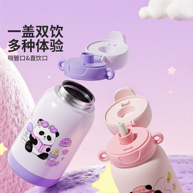 杯具熊轻暖双饮保温杯高颜值情侣水杯纯色简约学生上学吸管杯新款