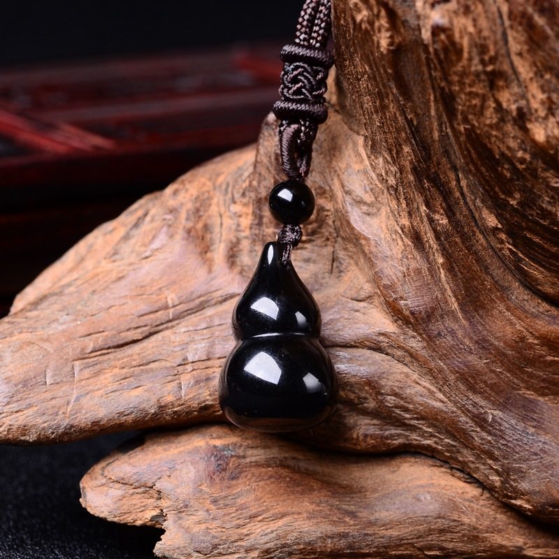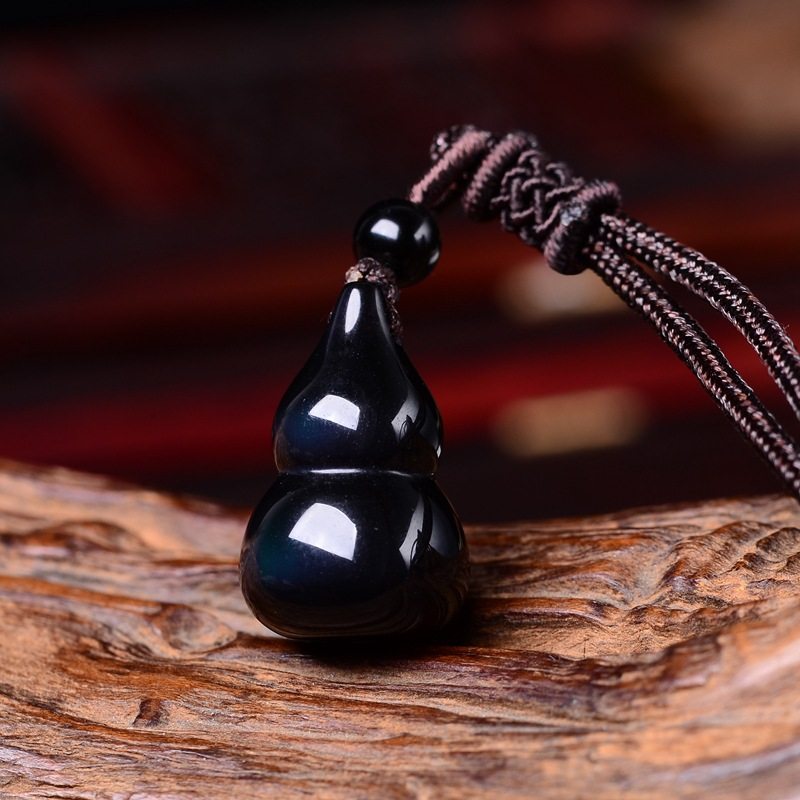 天然黑曜石小葫芦吊坠水晶饰品挂件钥匙扣手机链挂坠项链男女礼物
