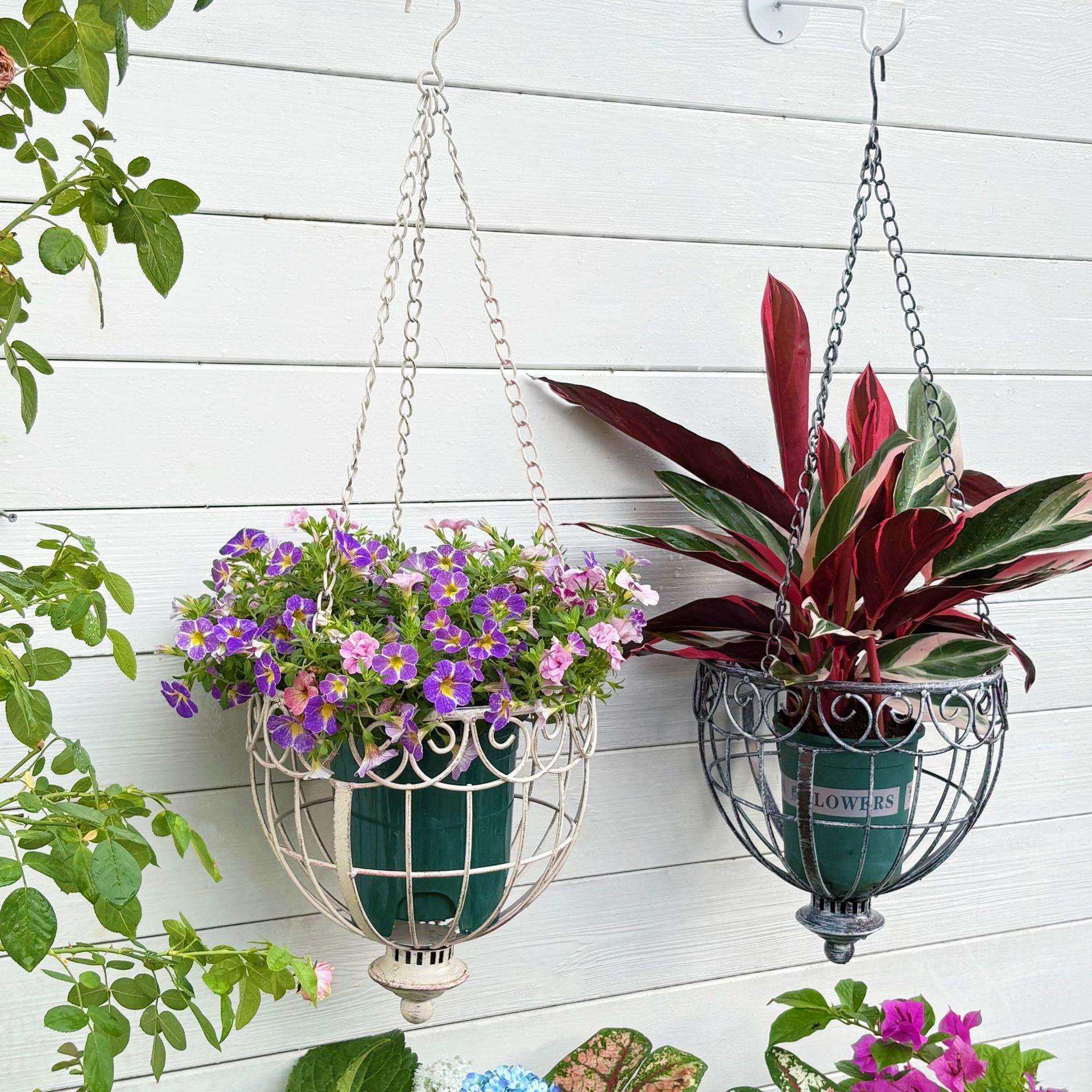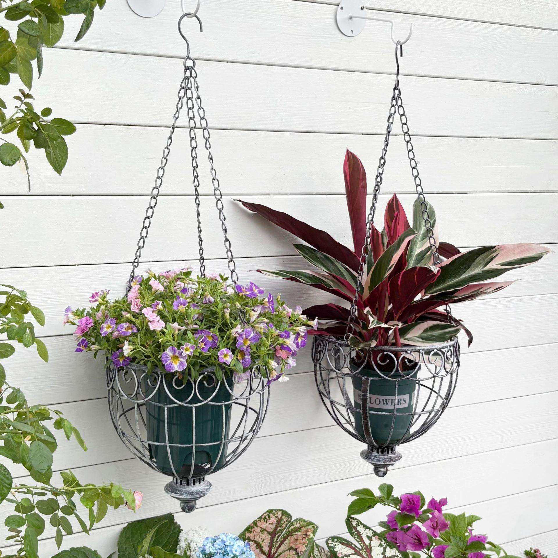 temu跨境热美迪吊篮户外铁艺悬挂庭院花园垂吊装饰盆花器阳台花盆