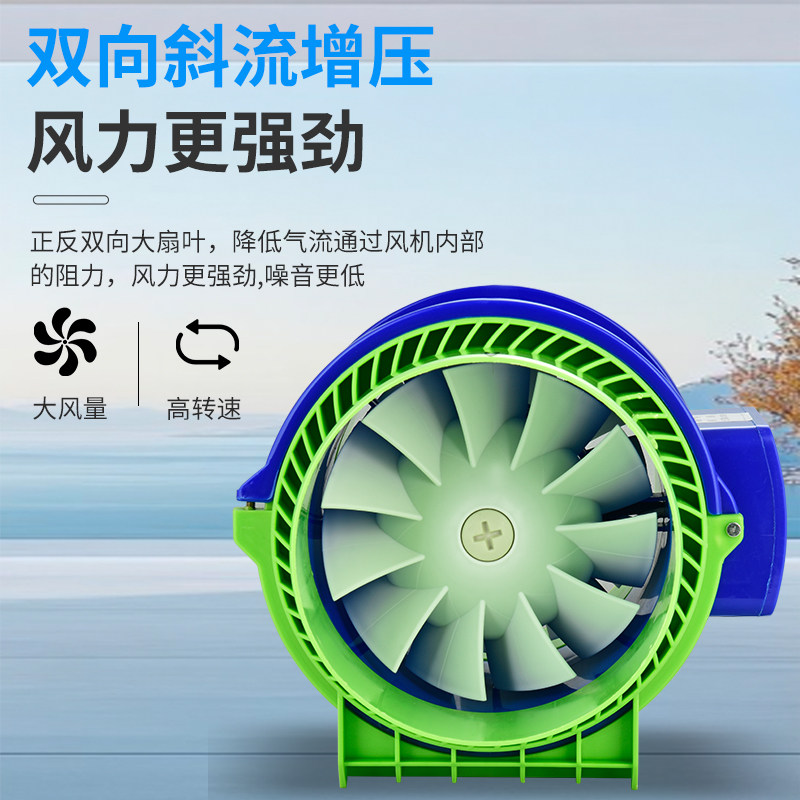 管道排风机强力轻音换气扇卫生间工业抽风机斜流增压厨房排气扇
