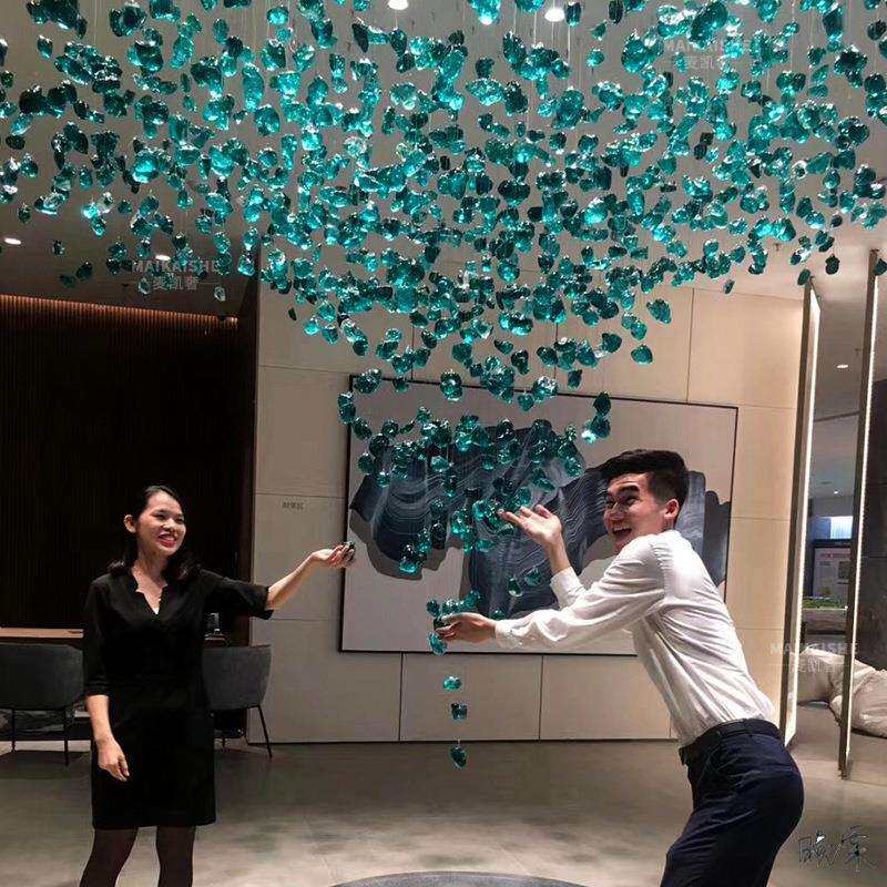 售楼部沙盘灯石头吊灯酒店大堂前台楼梯创意琉璃装饰非标工程灯具