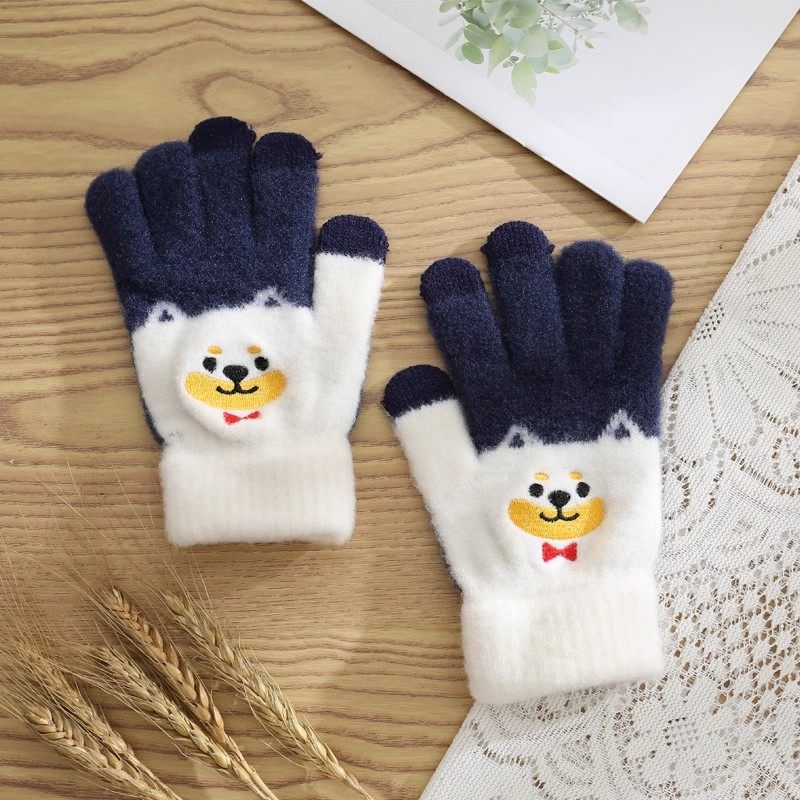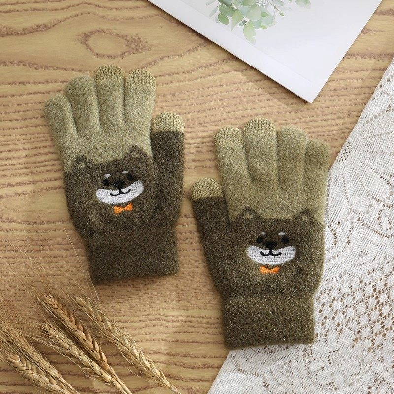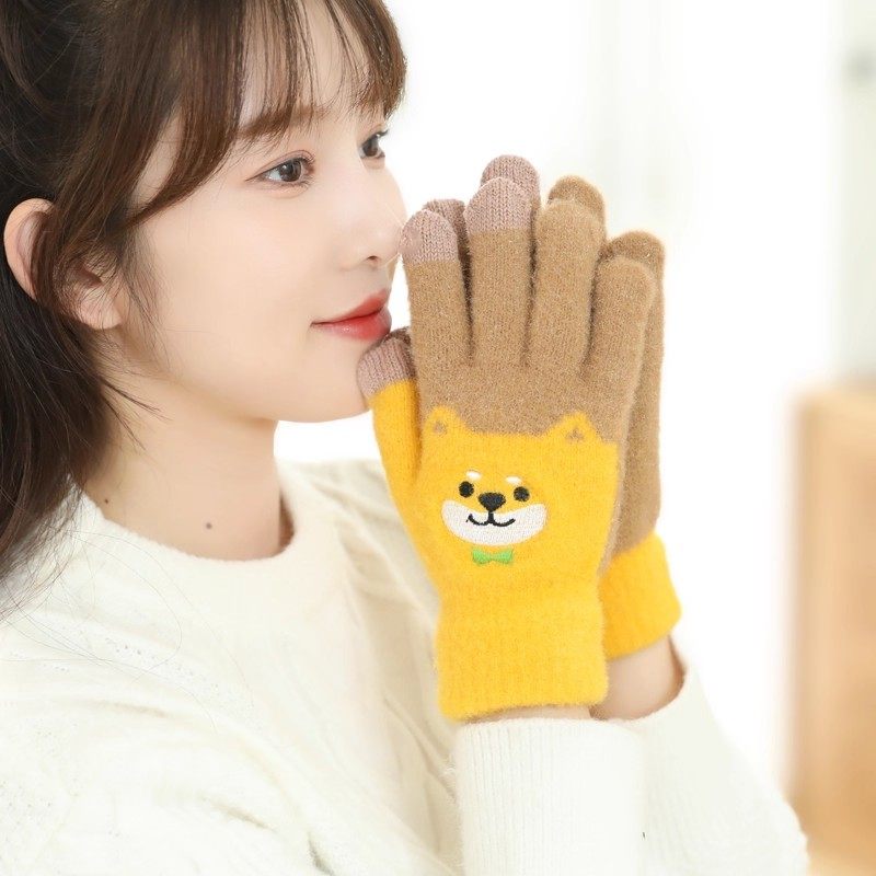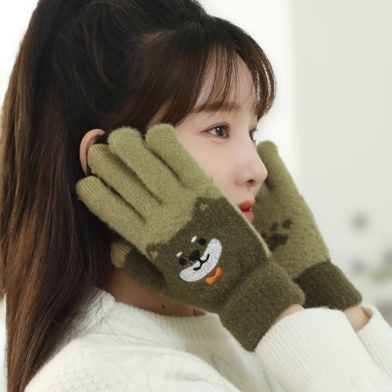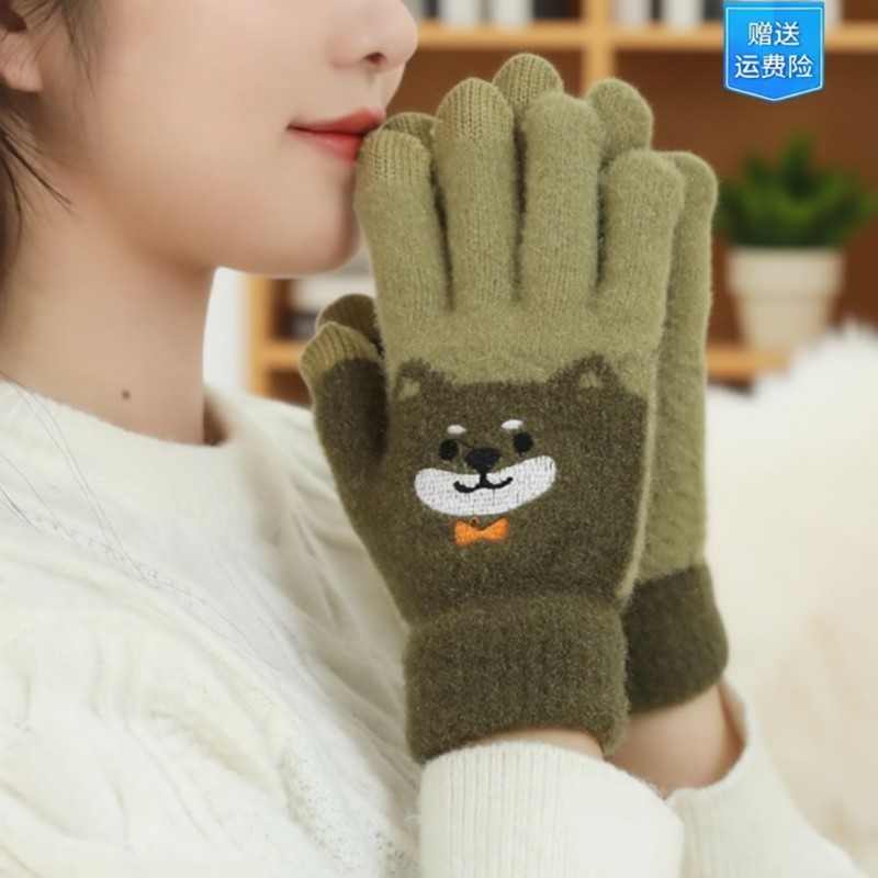 保暖手套女冬季加绒加厚卡通可爱五指学生骑车防寒毛线男连指防风