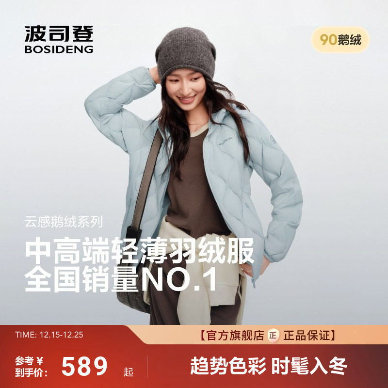 波司登25新款鹅绒轻薄羽绒服女士短款连帽保暖亲肤时尚外套