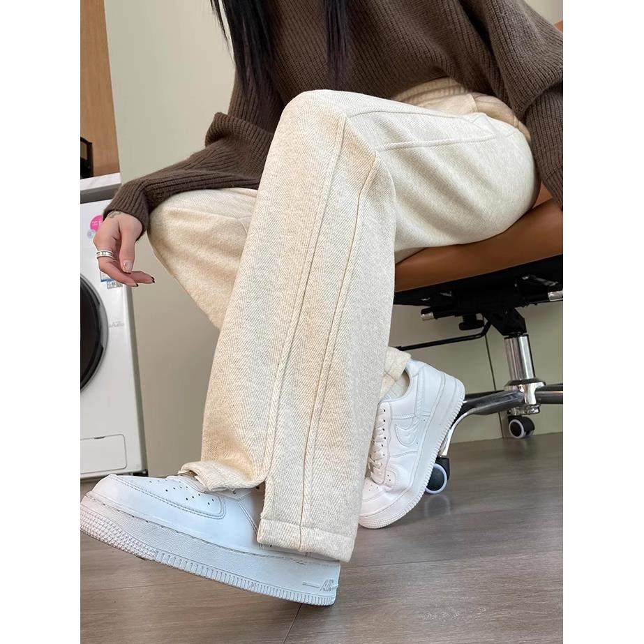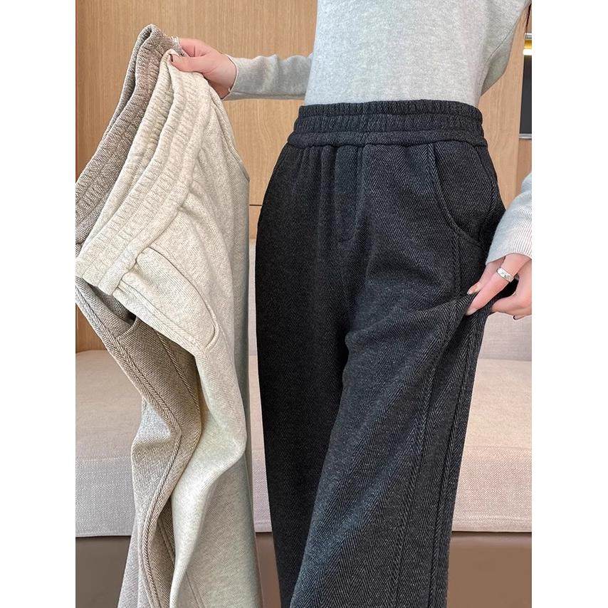 毛呢阔腿裤女秋季窄版女裤冬加绒加厚直筒长裤小个子灰色新款软糯