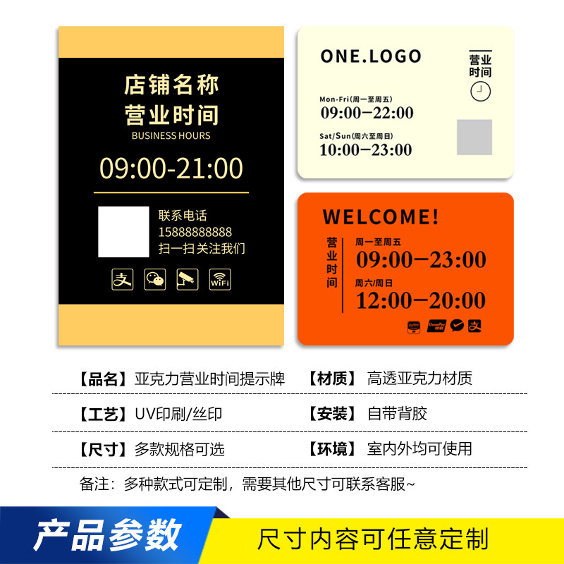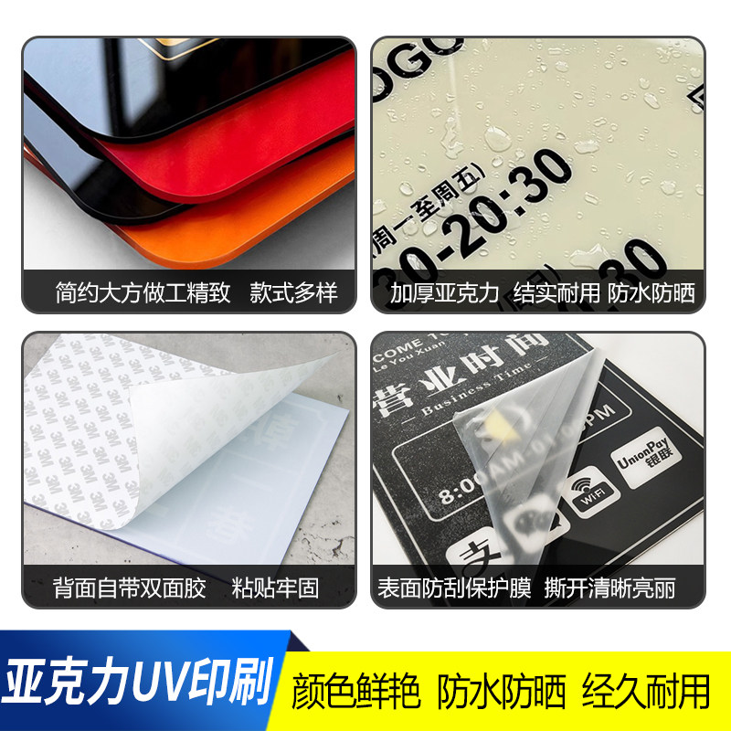 营业时间告示牌有事外出门店玻璃贴店铺门口上班休息工作电话号码提示牌子亚克力广告标识招牌营业中挂牌定制