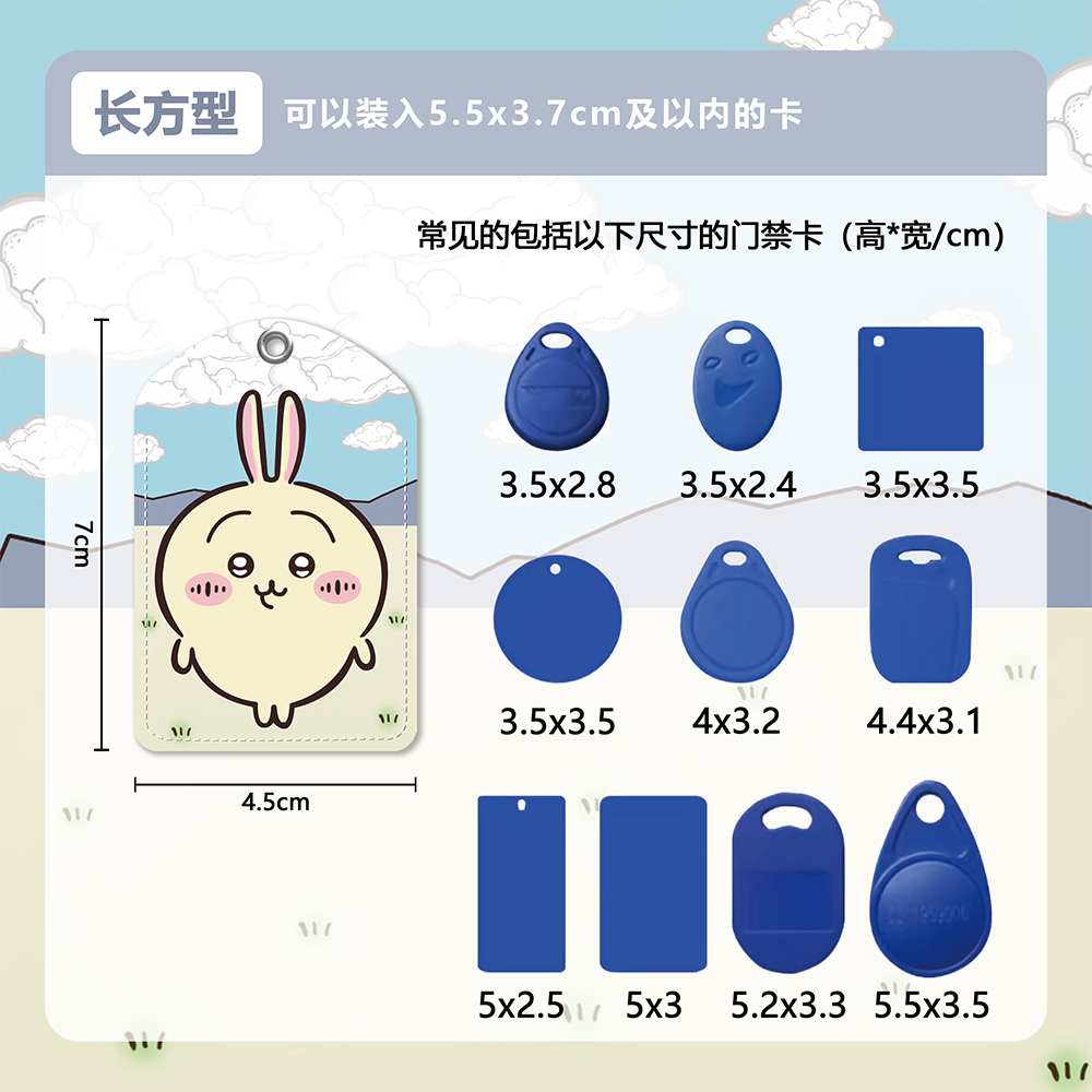 可爱创意门禁卡套小长方形迷你小卡套卡通水滴钥匙挂扣小区电梯感应卡门卡保护套电动车软套pu皮保护壳弹力绳