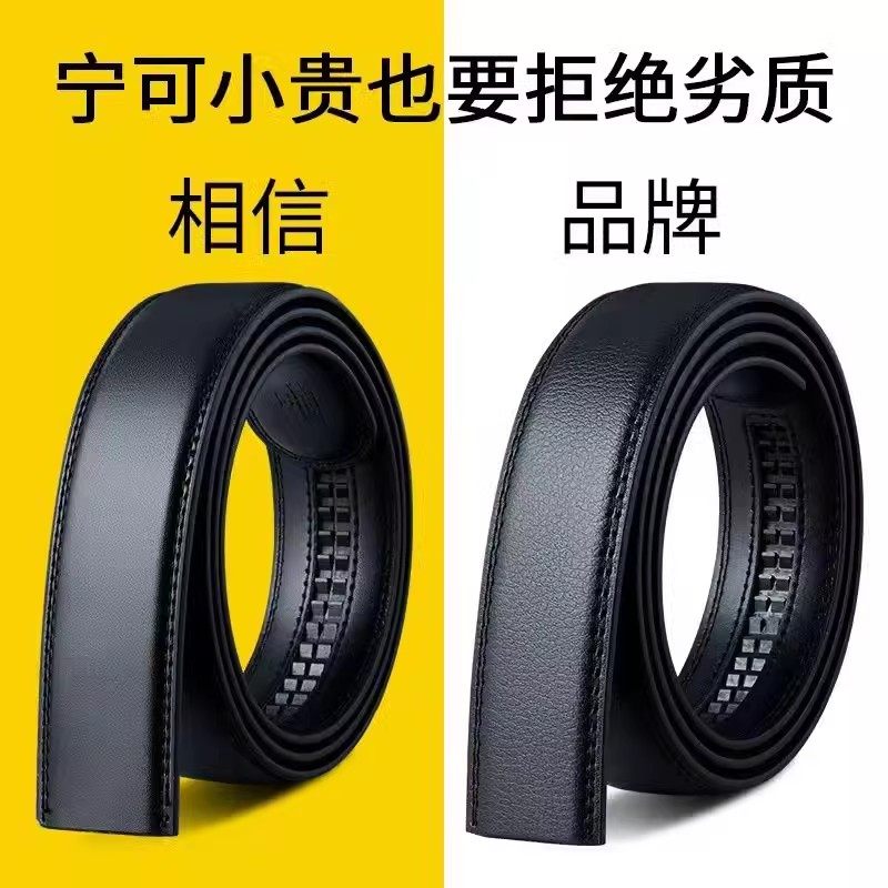 无头皮带男自动扣不带头真皮牛皮针扣腰带头层带条高档商务休闲潮