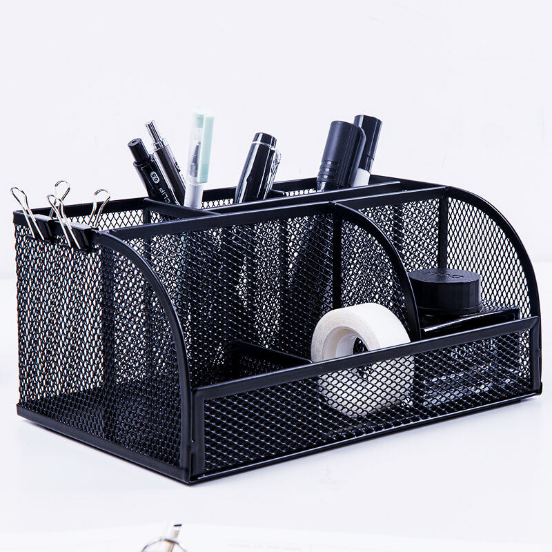 得力笔筒收纳盒创意时尚金属网格组合办公用桌面收纳笔插学生文具整理盒多功能笔座大容量简约收纳网状耐用