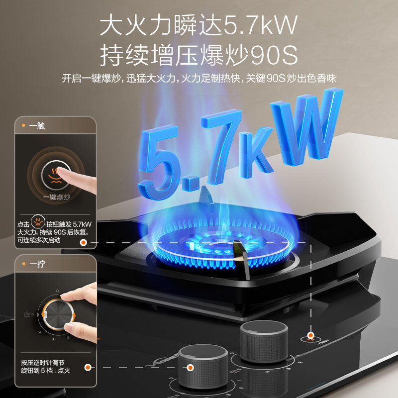 [政府补贴]万和5.7kW燃气灶家用厨房灶具天然气双炉爆炒灶台S5/S3