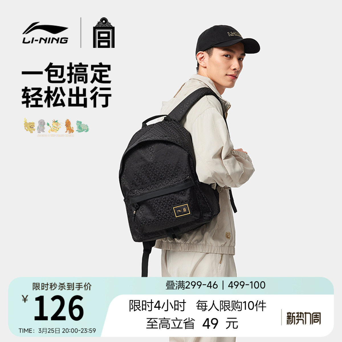 李宁中国文化系列故宫联名双肩包男女2026新款学生背包环保运动包