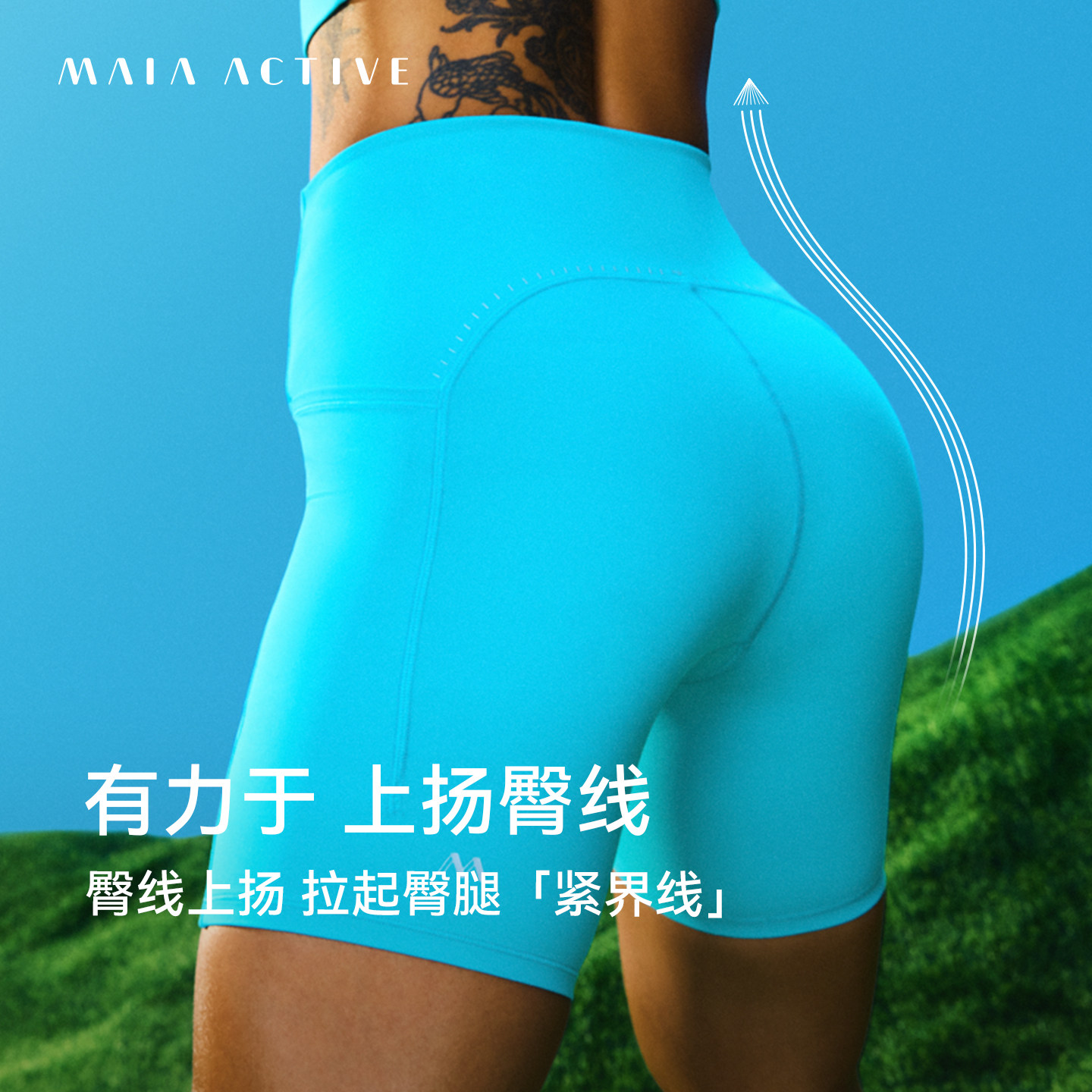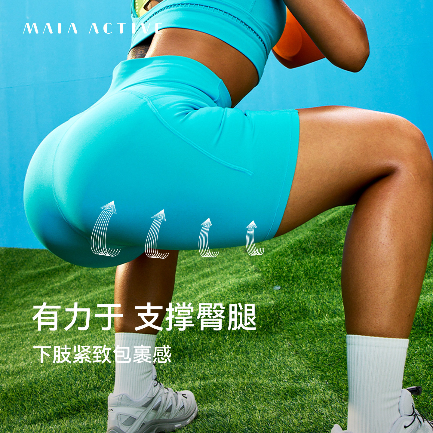 线雕短短裤健身运动训练骑行裤子4分高腰紧身瑜伽裤 MAIAACTIVE