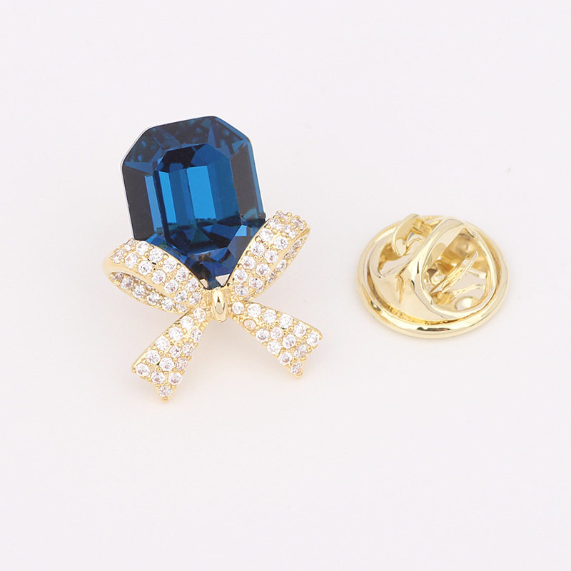 韩版可爱蝴蝶结水晶胸针女小众设计高级感防走光扣领针锆石刺马针