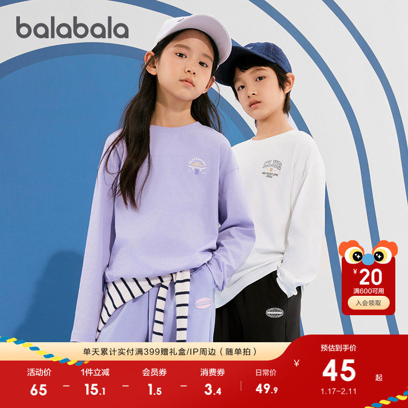 巴拉巴拉童装男童长袖t恤女童纯棉打底衫儿童内搭宝宝2025春秋装