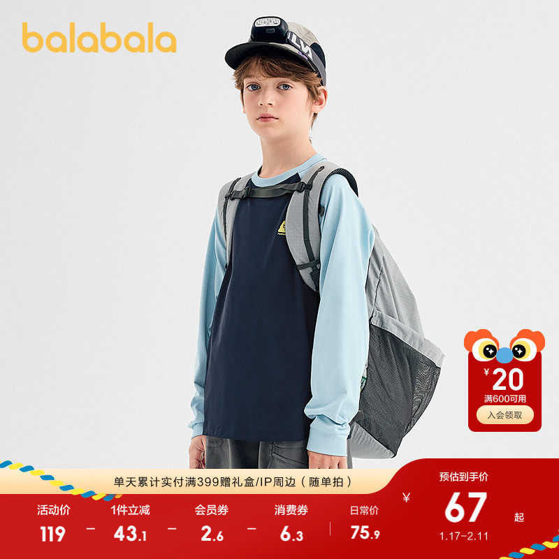 巴拉巴拉童装男童长袖t恤儿童2025新款秋装速干内搭