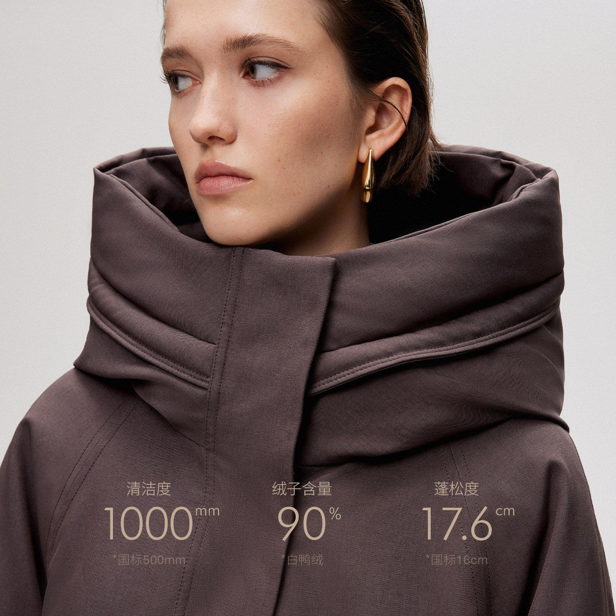 鸭鸭中戏pro羽绒服女冬中长款连帽过膝加厚95绒波兰鸭绒保暖外套J