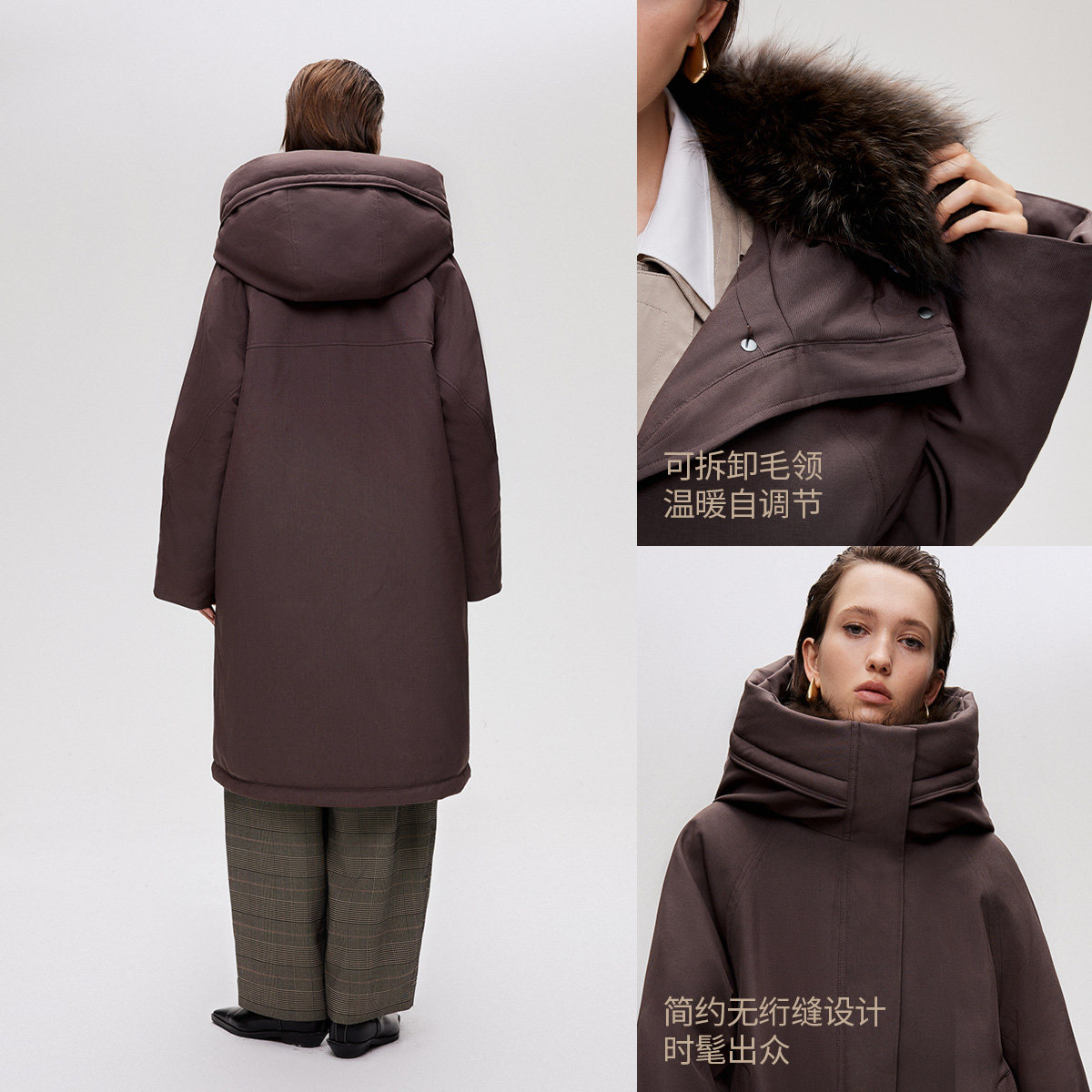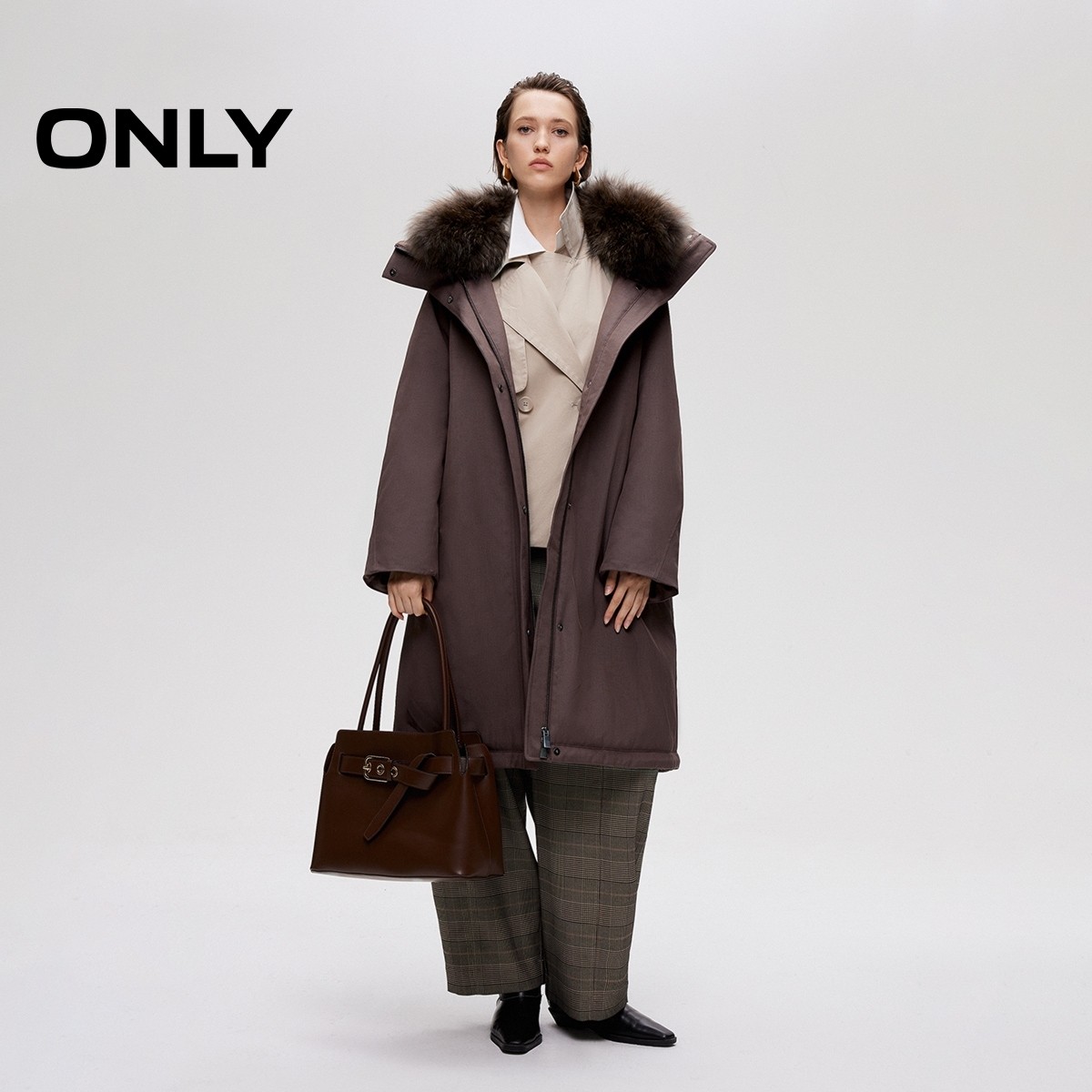 【ONLY奥莱】冬季新款90白鸭绒保暖可拆卸毛领中长款连帽羽绒服女