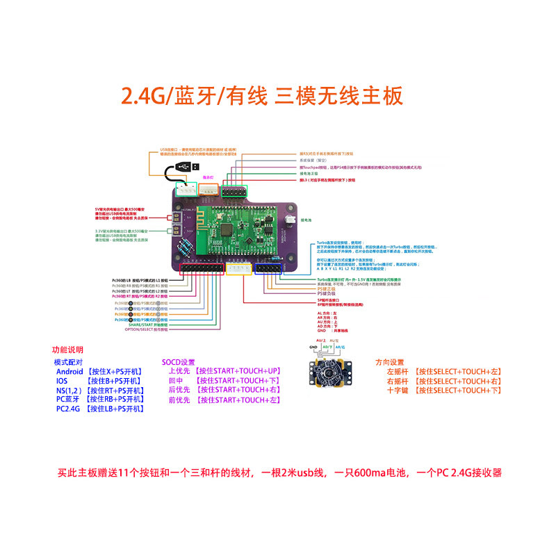 PS4 PS5 SWITCH STEAM XBOX IOS安卓 SOCD 2.4G蓝牙三模无线主板