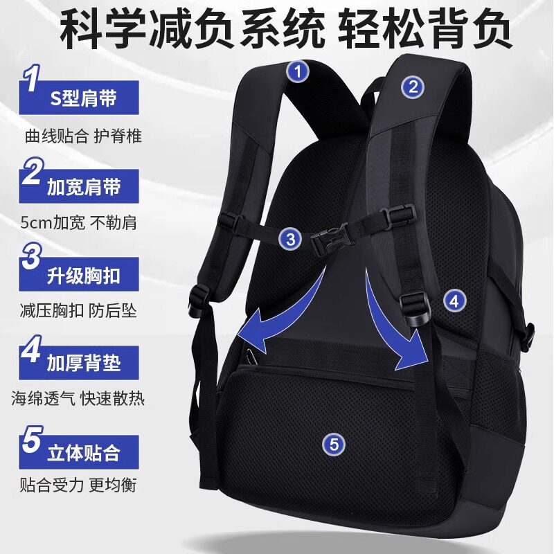 中学生书包2025男生初中生高中生大容量背包男减负护脊男款加大