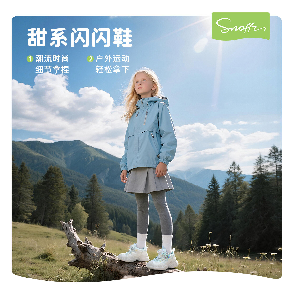 斯纳菲女童运动鞋秋冬新款蓝色儿童纽扣跑步鞋软底轻便户外徒步鞋