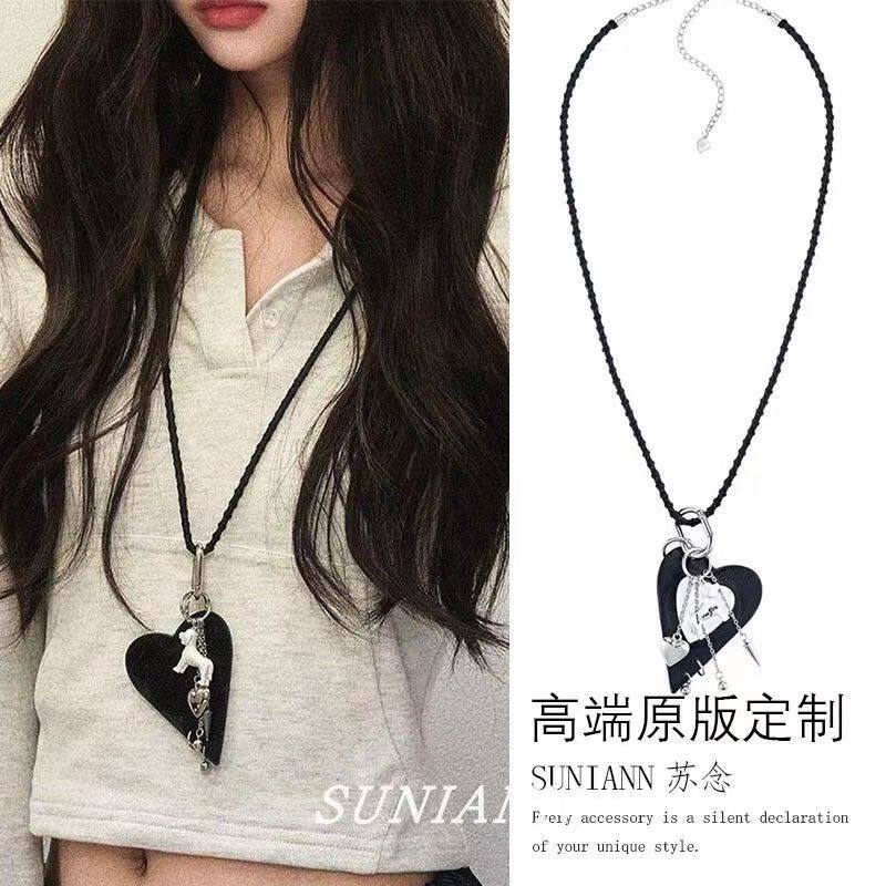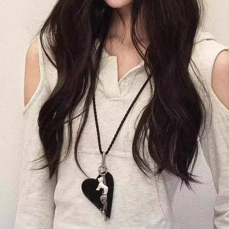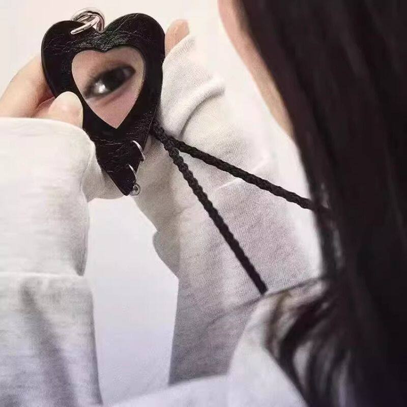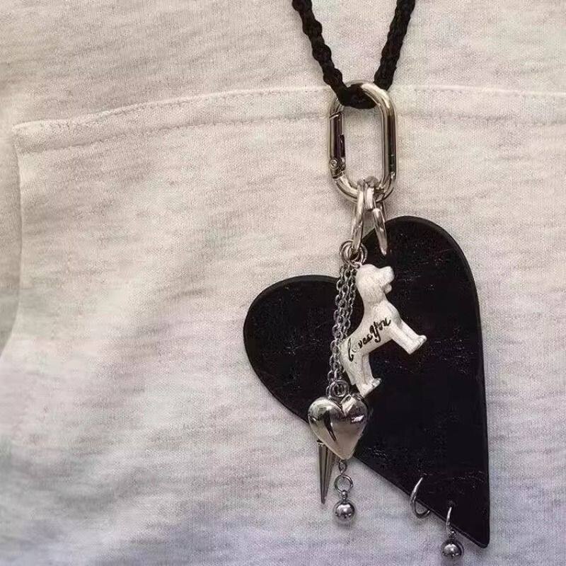爱心小狗化妆镜编织设计感项链女毛衣链小众长款可拆卸包挂配饰品