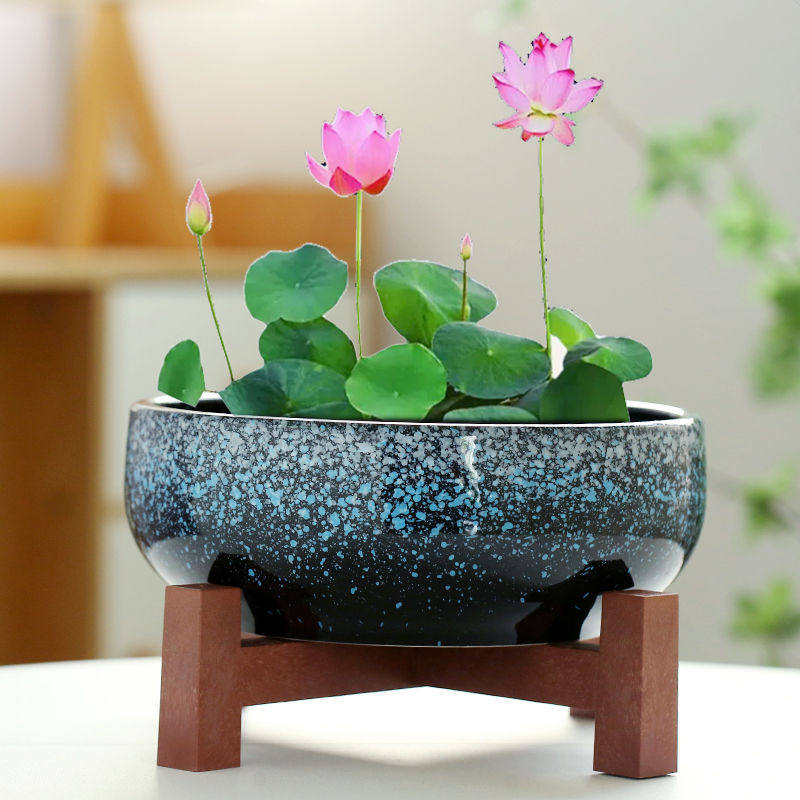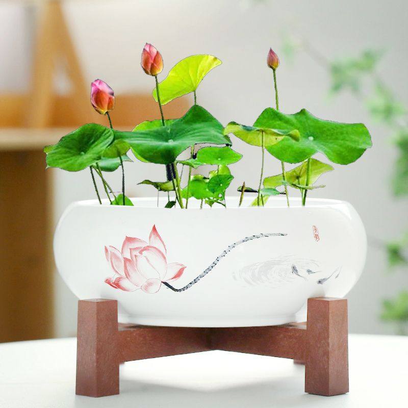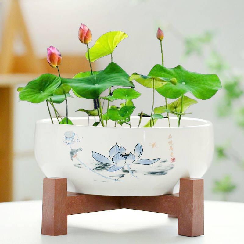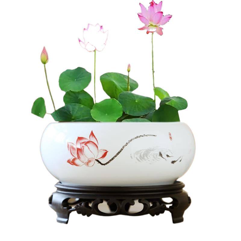 水仙花盆陶瓷铜钱草水培睡莲碗莲金钱草专用盆缸无孔大带底座客厅