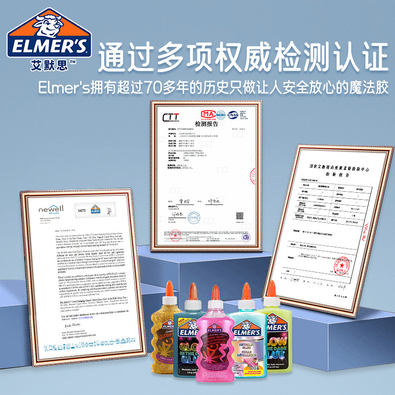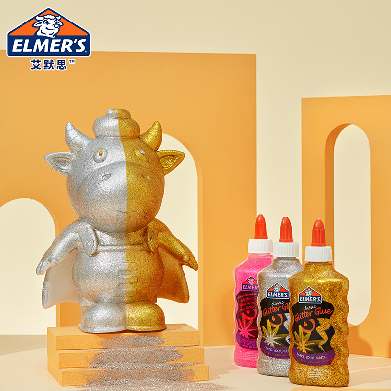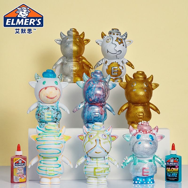【儿童节礼物】艾默思Elmer's牛头闪粉胶夜光橡皮水晶泥彩泥戳戳泥史菜姆儿童安全无毒安全玩具
