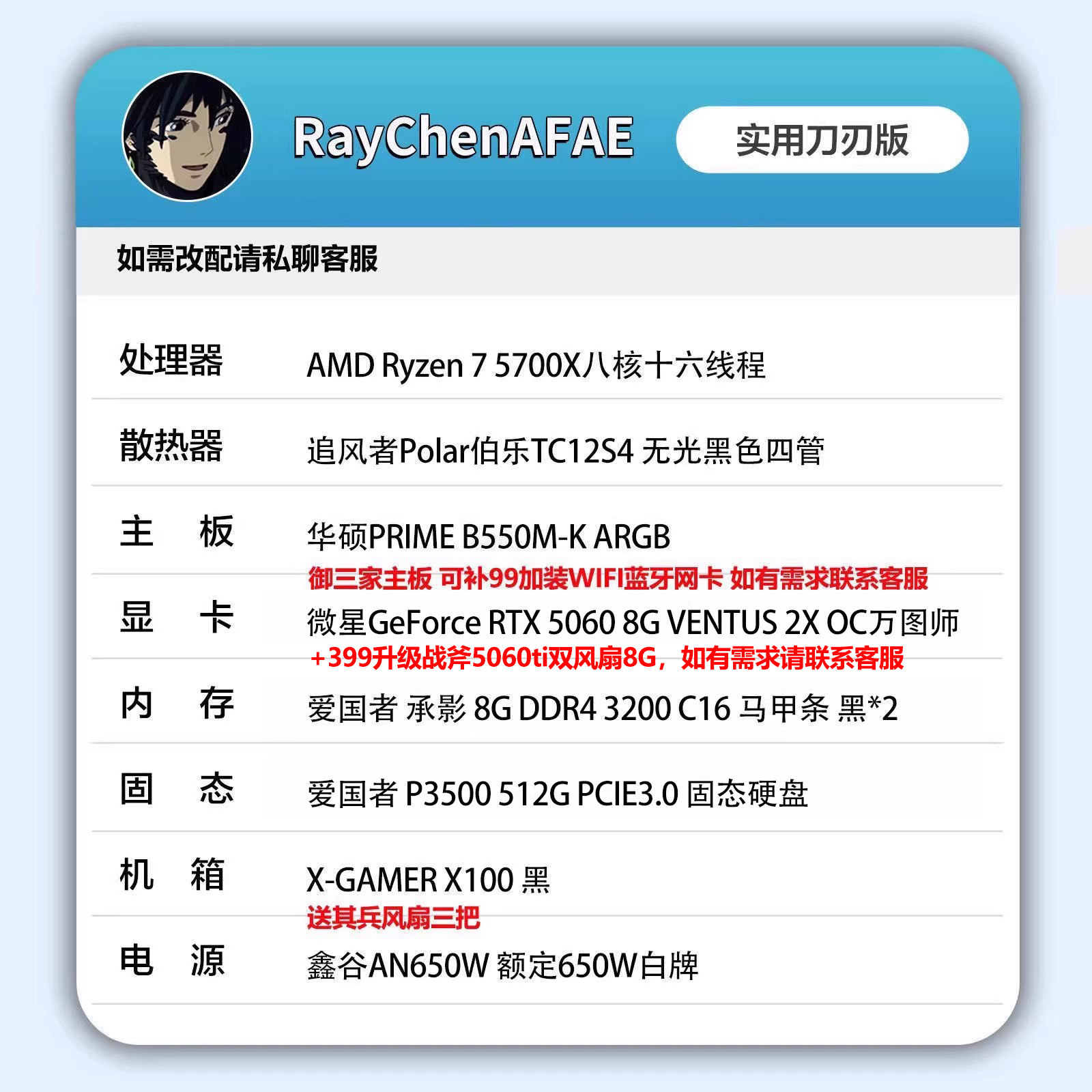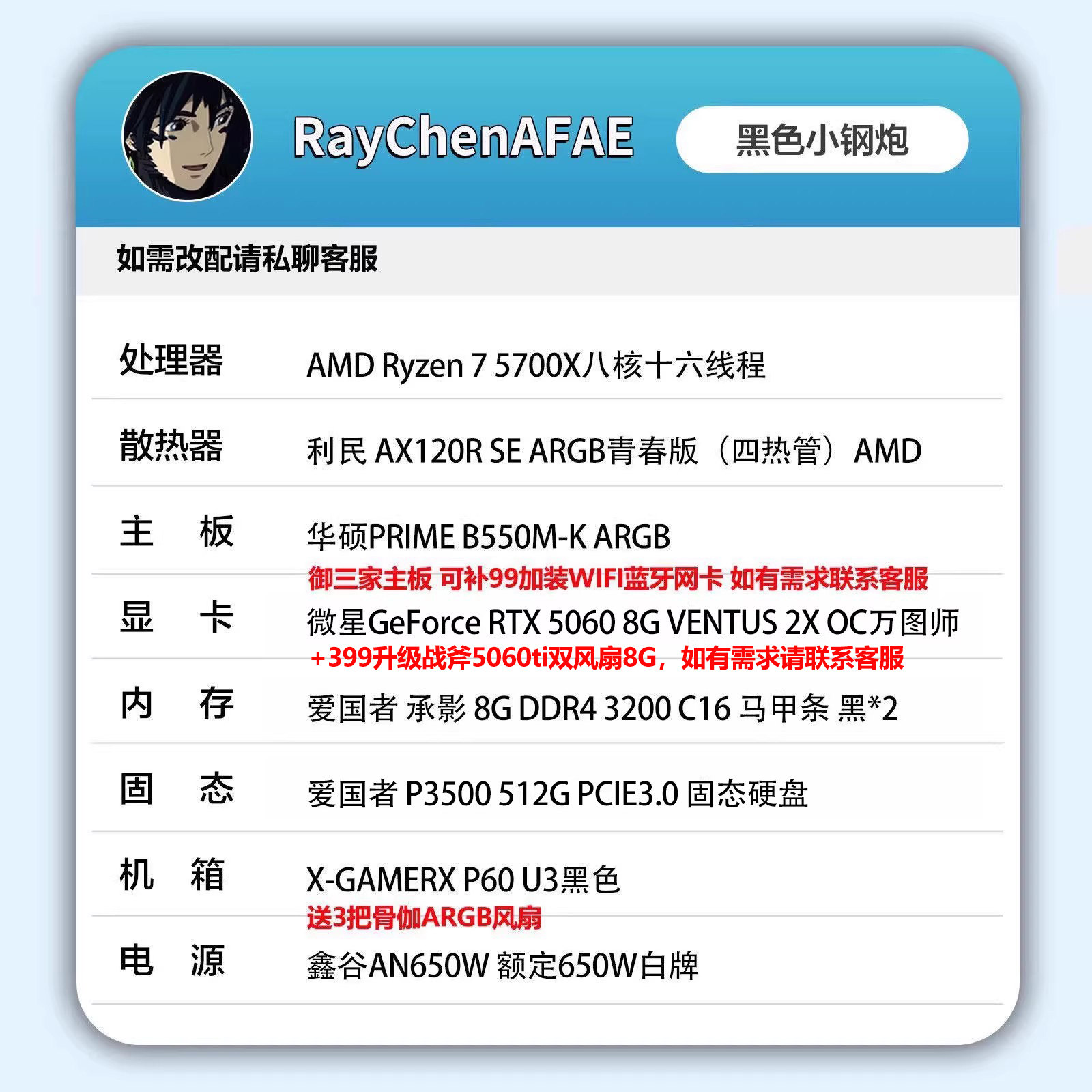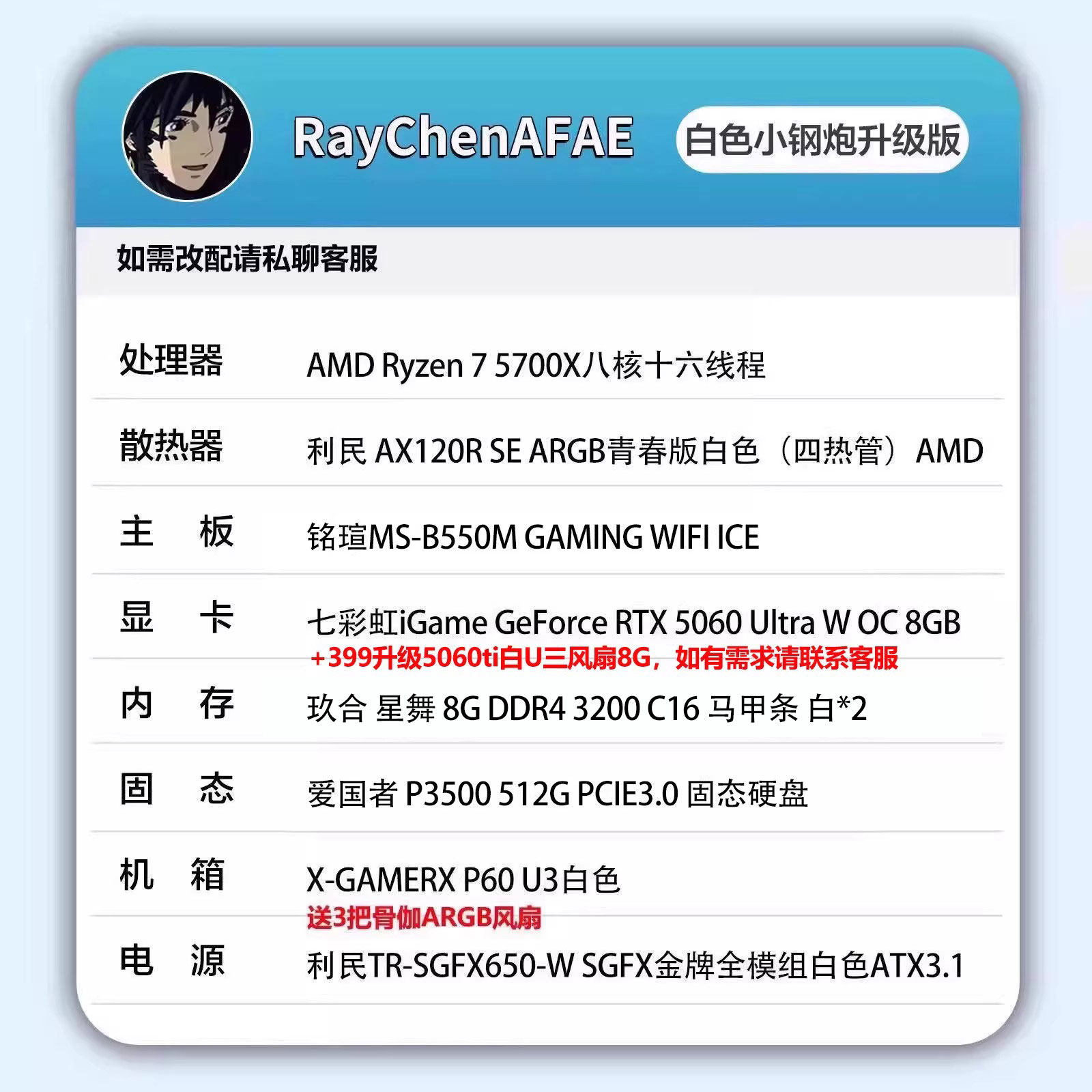RTX 5060+R7 5700X 纯白RGB小钢炮 高性能DIY游戏生产力电脑主机