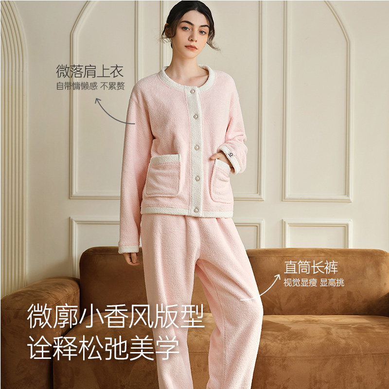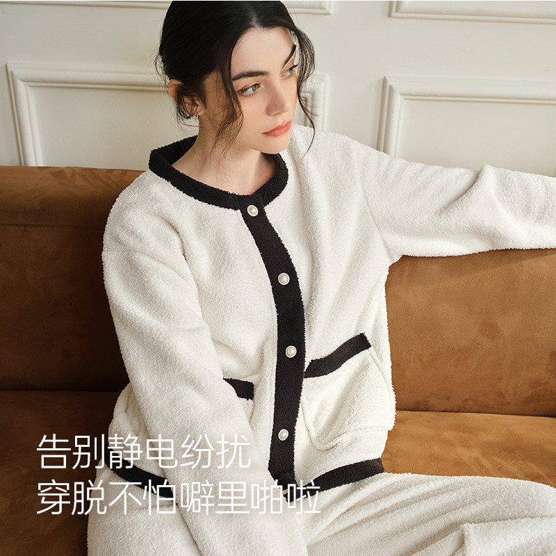 幸棉法式小香风珊瑚绒睡衣女款冬季可外穿加厚高级感家居服套装