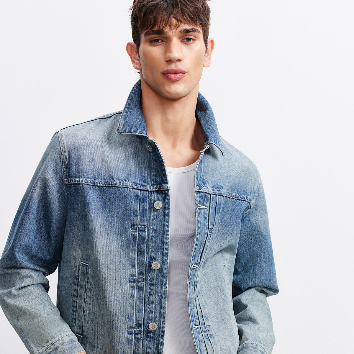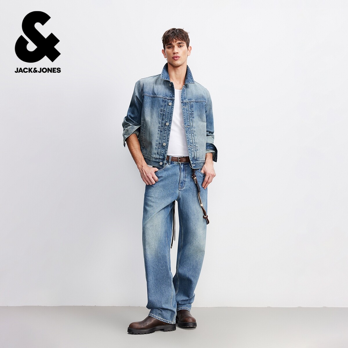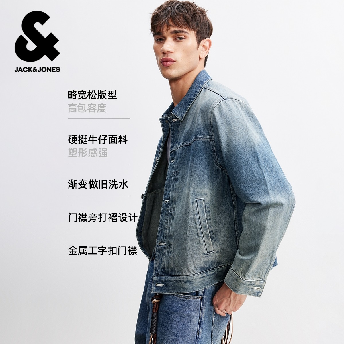 杰克琼斯牛仔外套男款夹克2026年春新款复古做旧水洗宽松上衣男装
