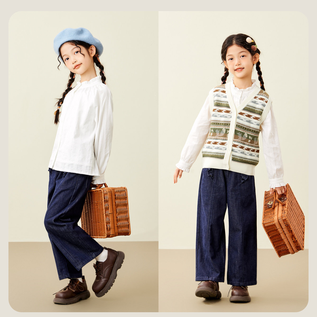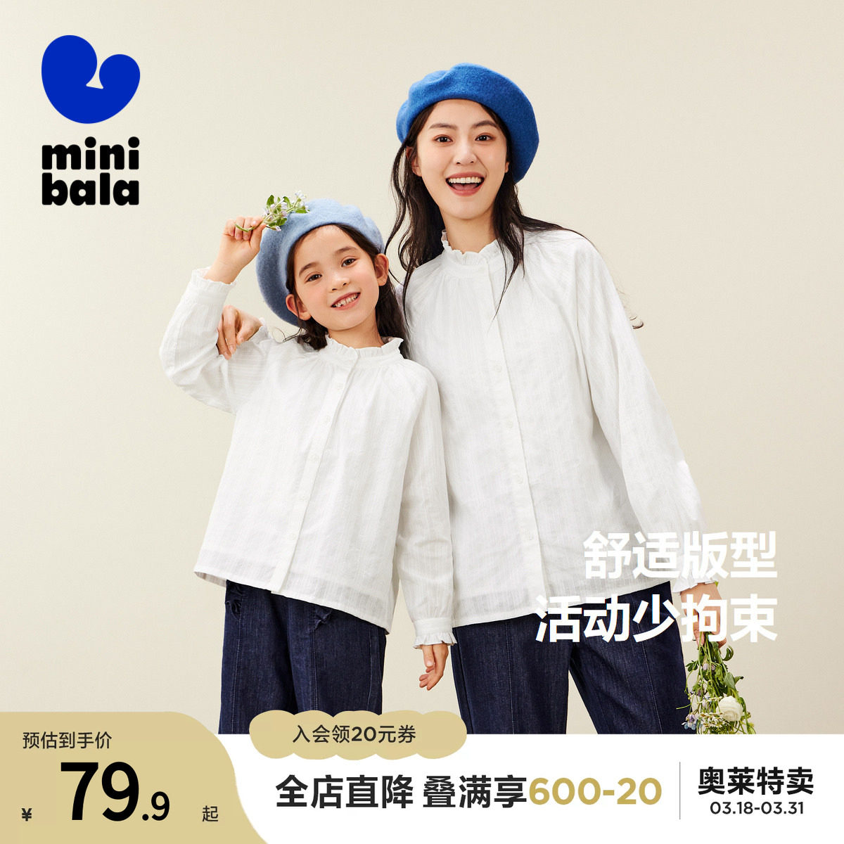 【mini亲子】迷你巴拉巴拉女童秋新品木耳边甜美上衣长袖衬衫