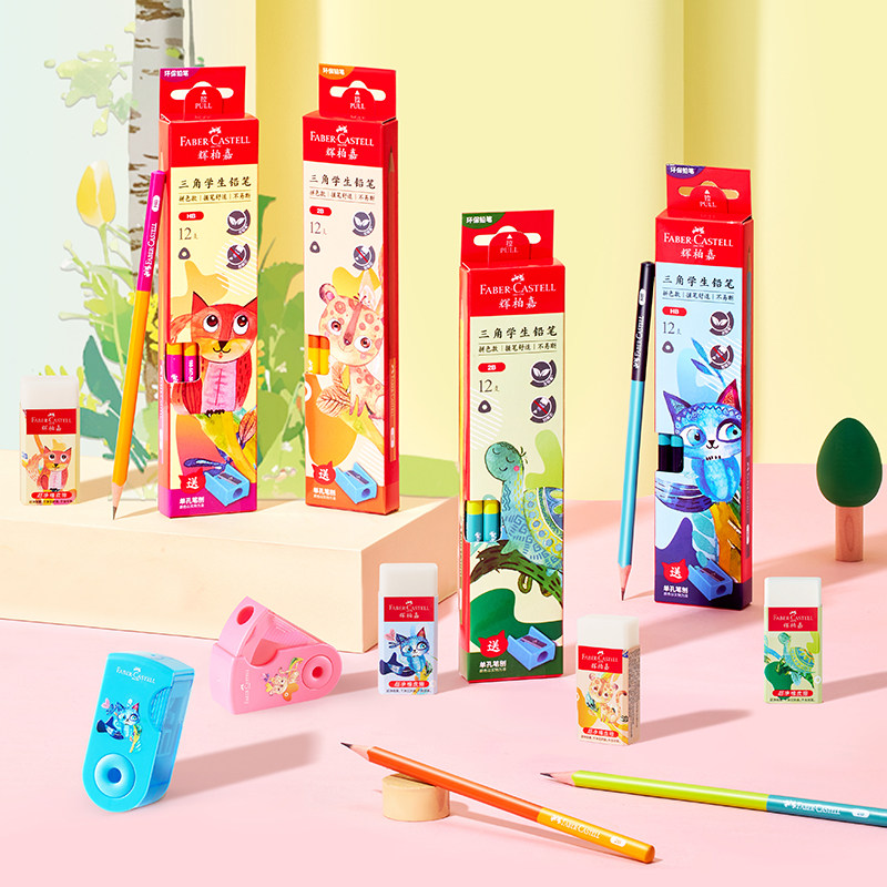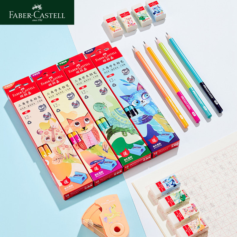 德国辉柏嘉三角铅笔学生专用奇妙动物系列三角铅笔 2bhb考试可用