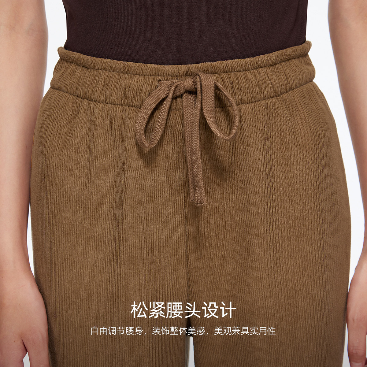 Vero Moda休闲裤女2025秋冬新款加绒松紧腰头抽绳显瘦百搭直筒裤