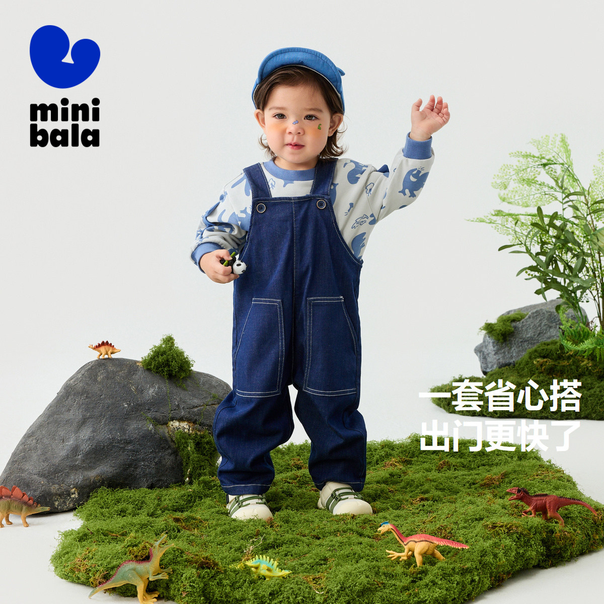【背带裤套装】迷你巴拉巴拉长袖男女童萌趣恐龙造型两件套春季