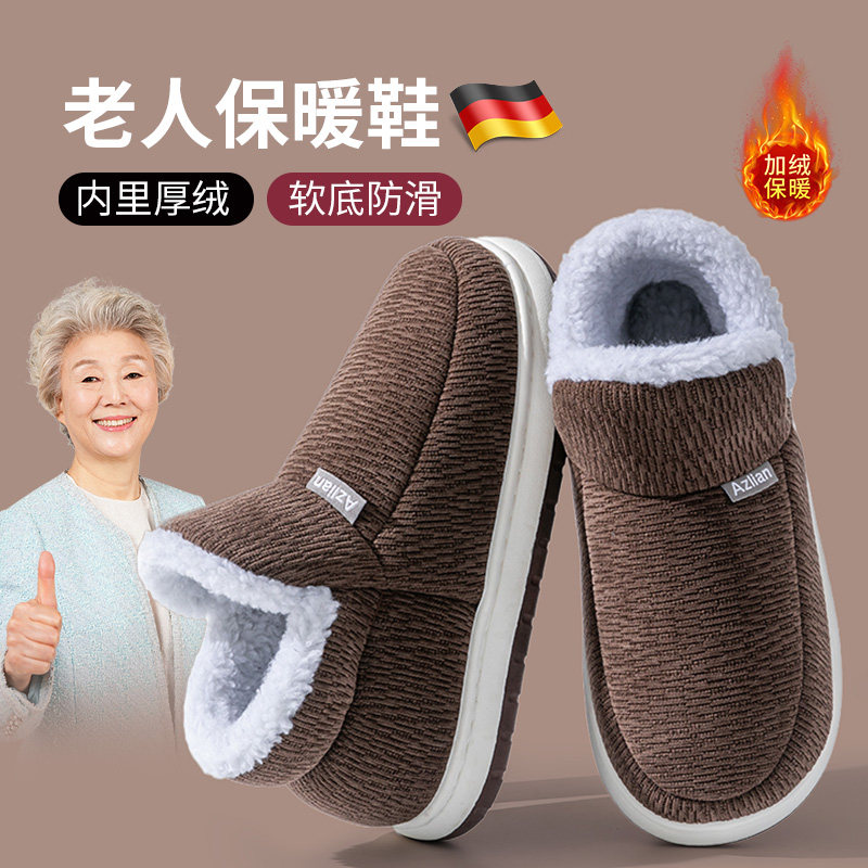 棉拖鞋中老年冬季加绒加厚厚底包跟男款防滑女士外穿保暖居家棉鞋