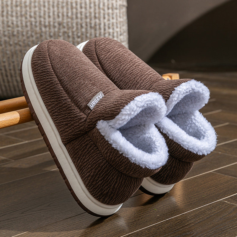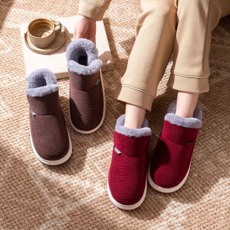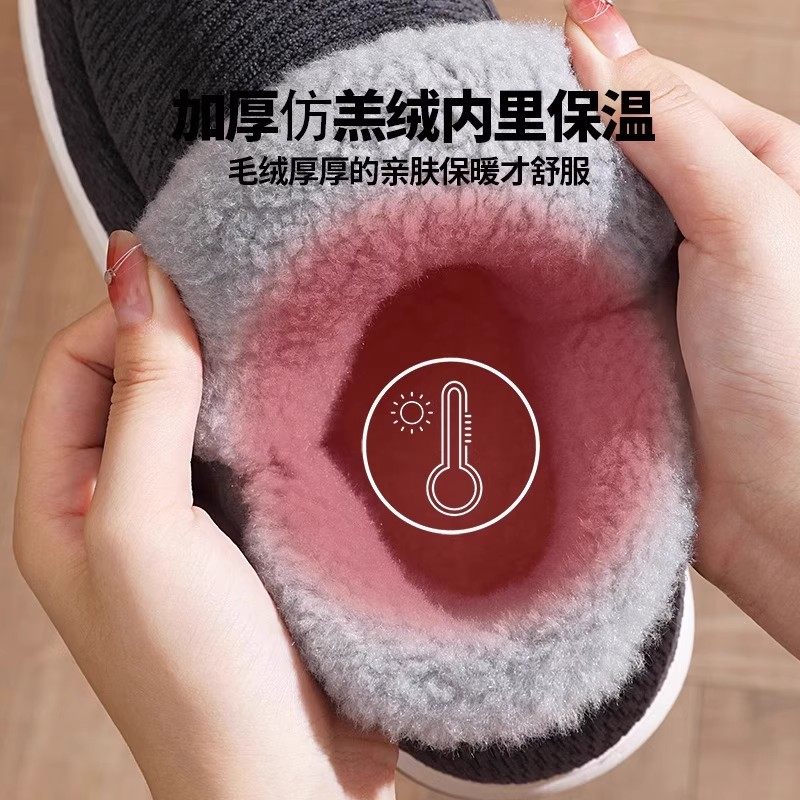 红豆踩屎感棉拖鞋女士秋冬季室内家居2025新款毛绒保暖情侣棉拖男
