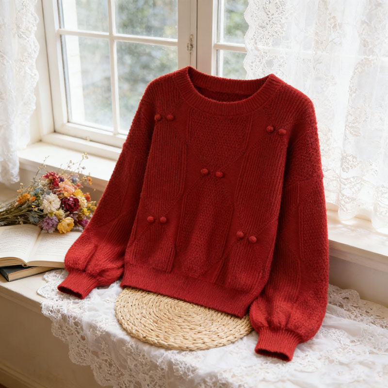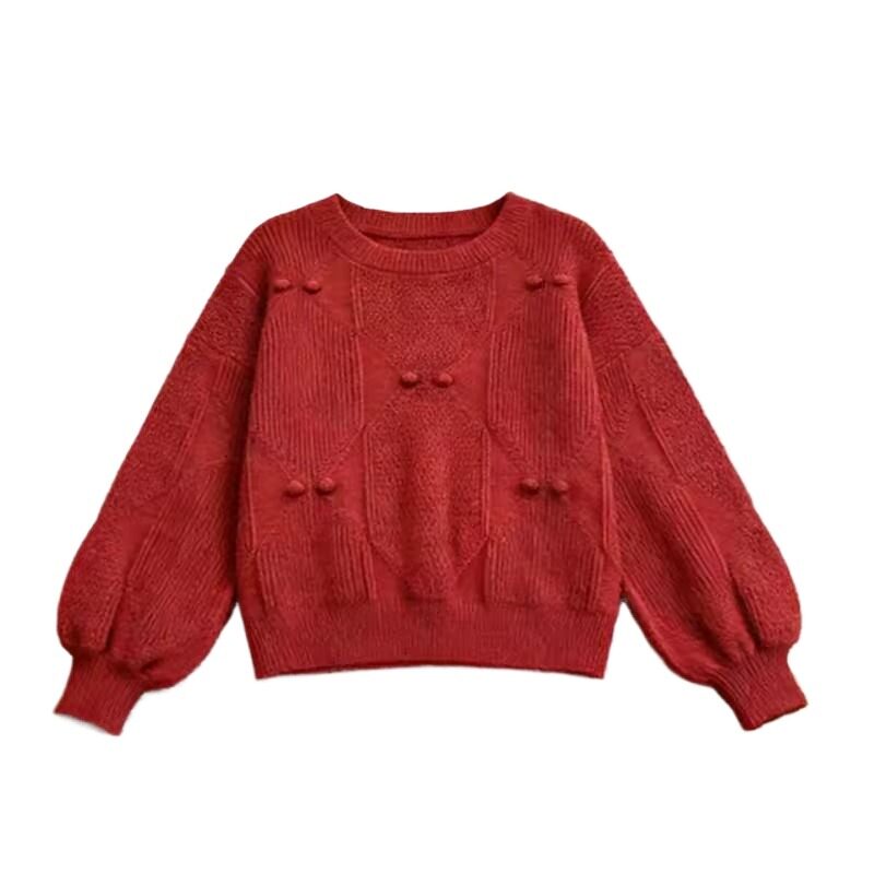 轻奢高级感新年红色毛衣打底衫女早春季设计感小众大码宽松针织衫