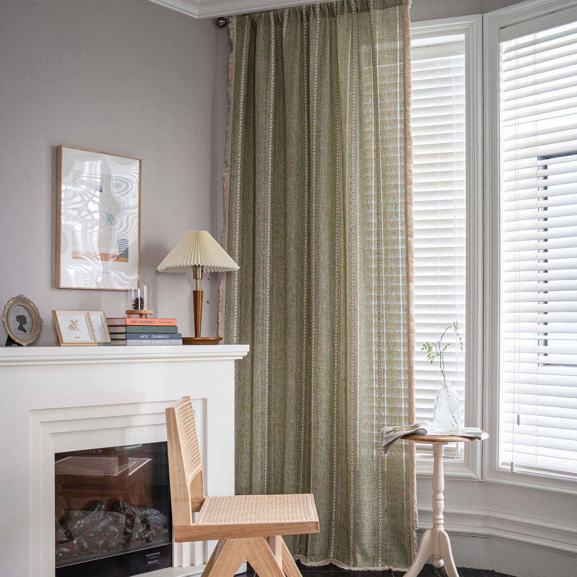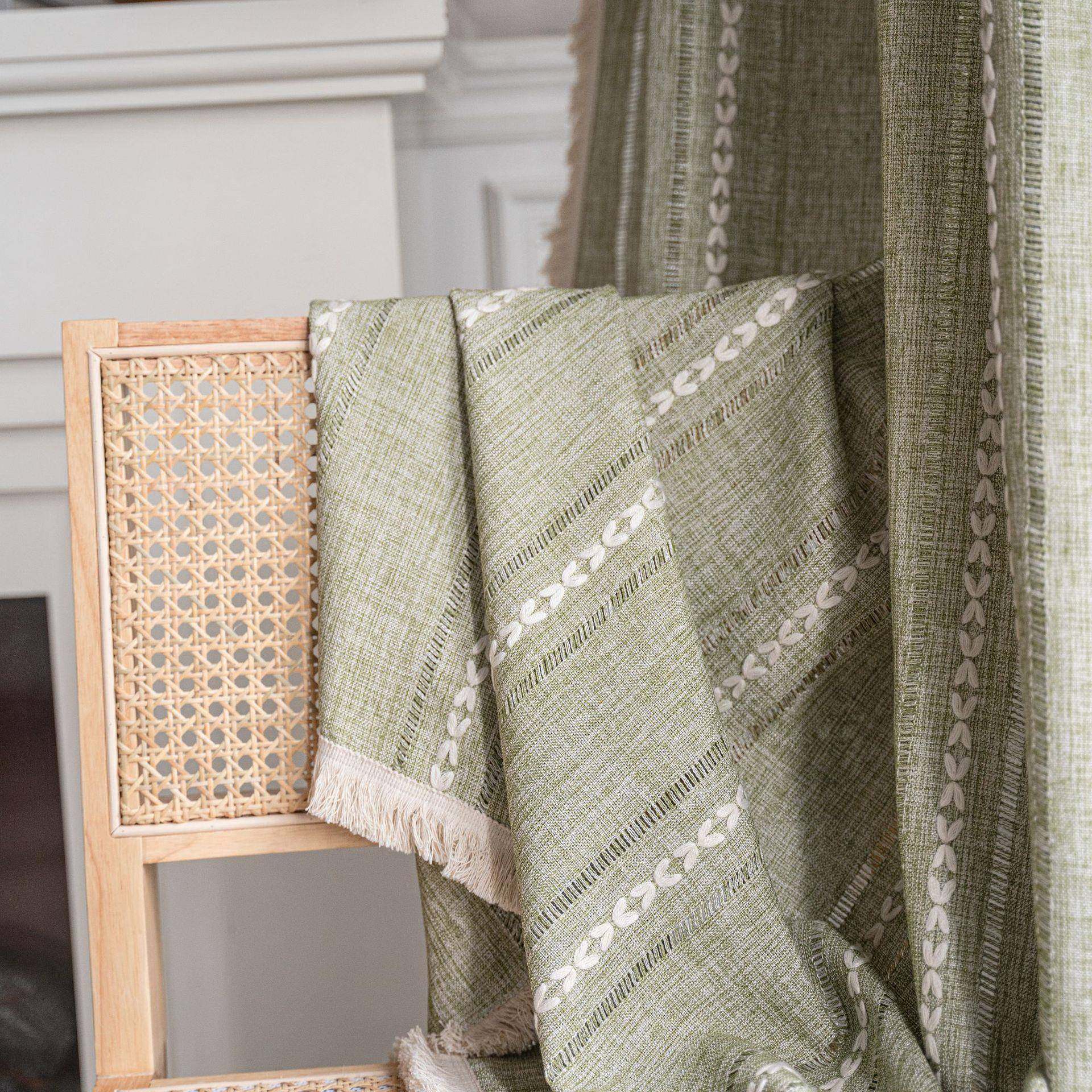 伊缦琪韵窗帘成品条纹绣花绿色纯色撞色厨房帘乡村风格半遮光飘窗