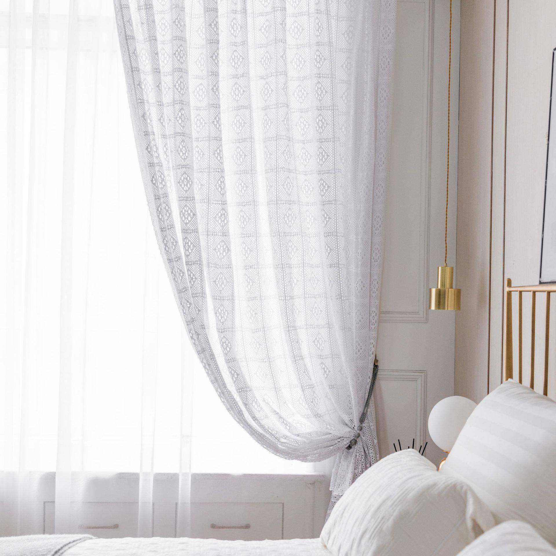 白色透光复古镂空窗帘成品北美乡村布艺落地窗纱窗帘